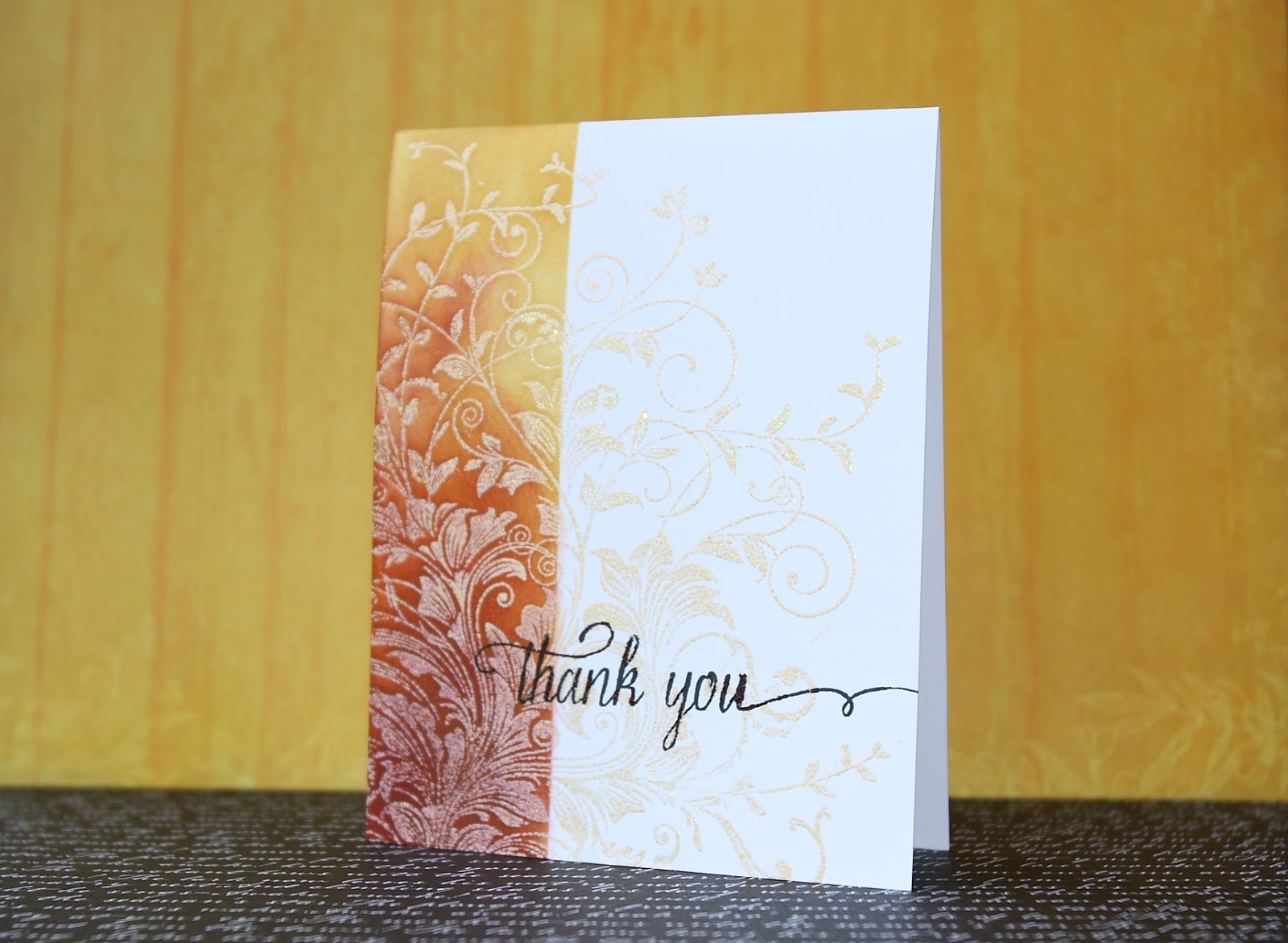 I stamped Leafy Vine from Hero Arts with embossing ink and heat embossed it using Enchanted gold EP.