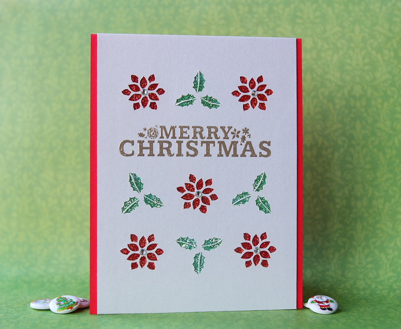 Rhinestones on the center of the poinsettias are the finishing touch.