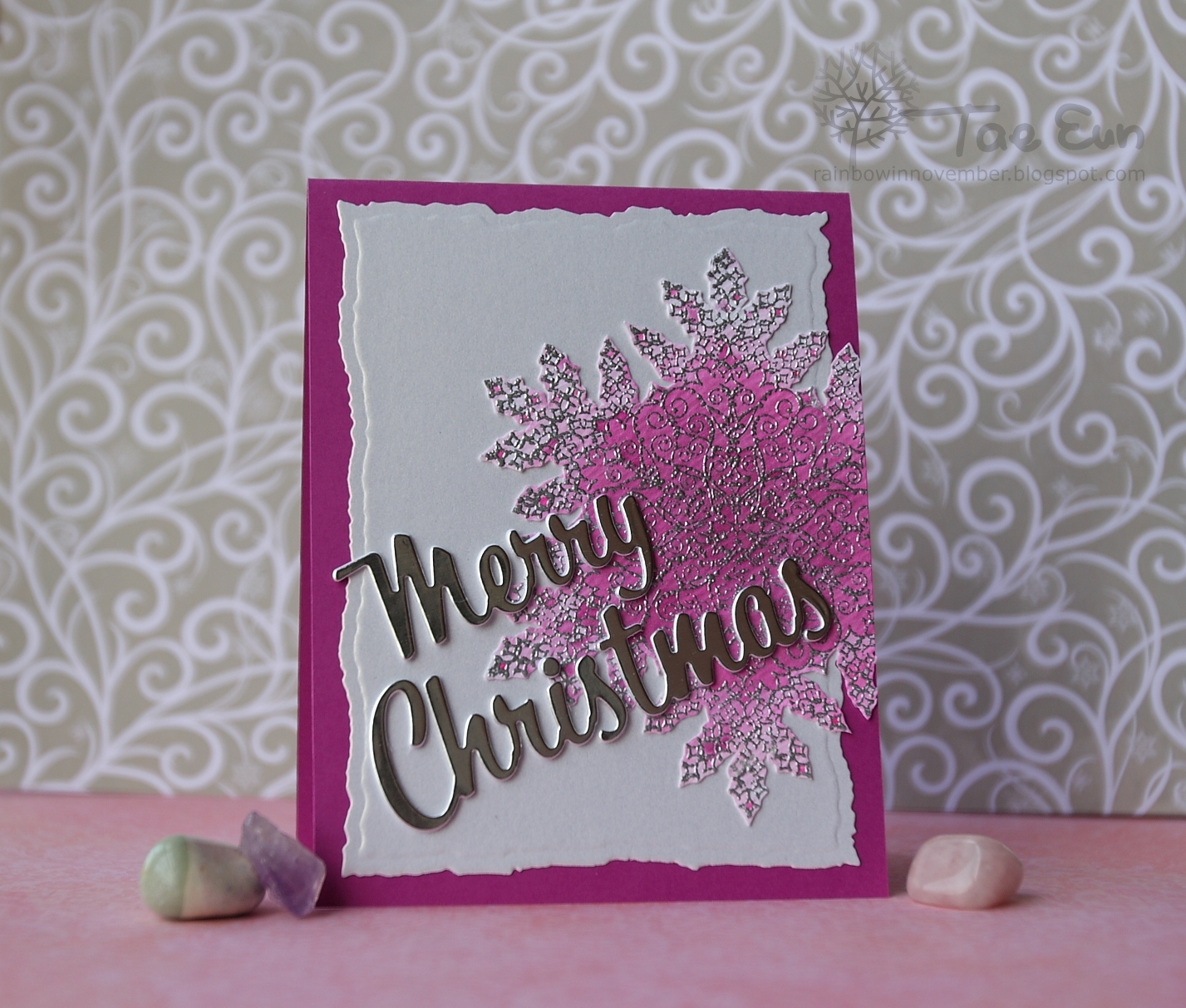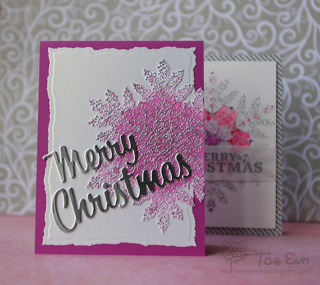 I wanted to make a christmas card in pink using this beautiful snowflake. But It became two out of the idea.