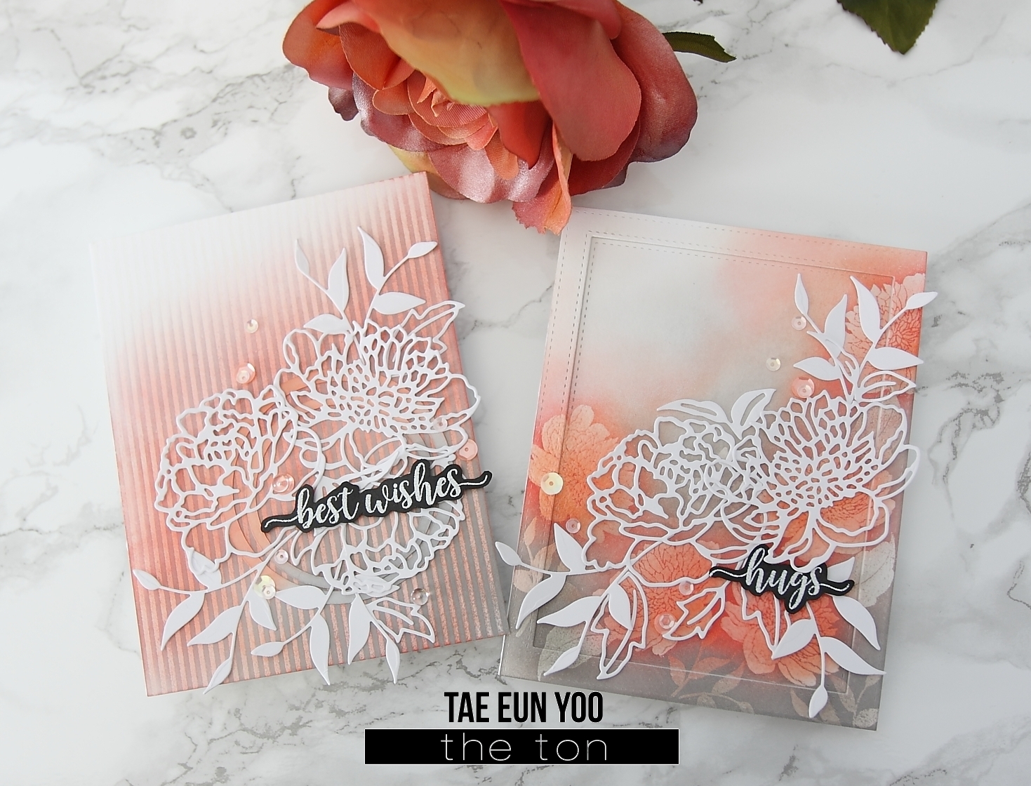 I’m on The Ton’s blog today with three cards in coral and gray color combination.