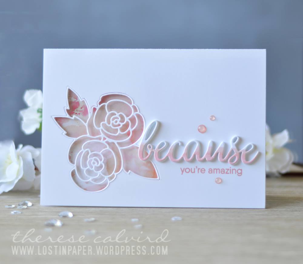 The Challenge for February is to CASE our Guest Designer. And the first Guest Designer at The Flower Challenge is no less than Therese Calvird from Lost in Paper! I adore her clean, beautiful and feminine card making style!