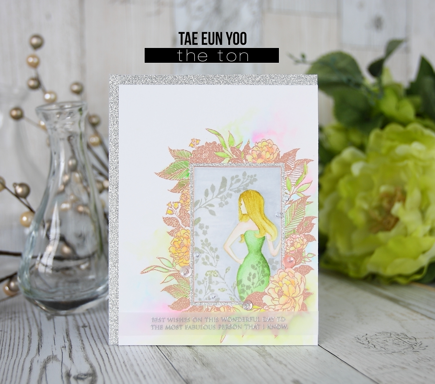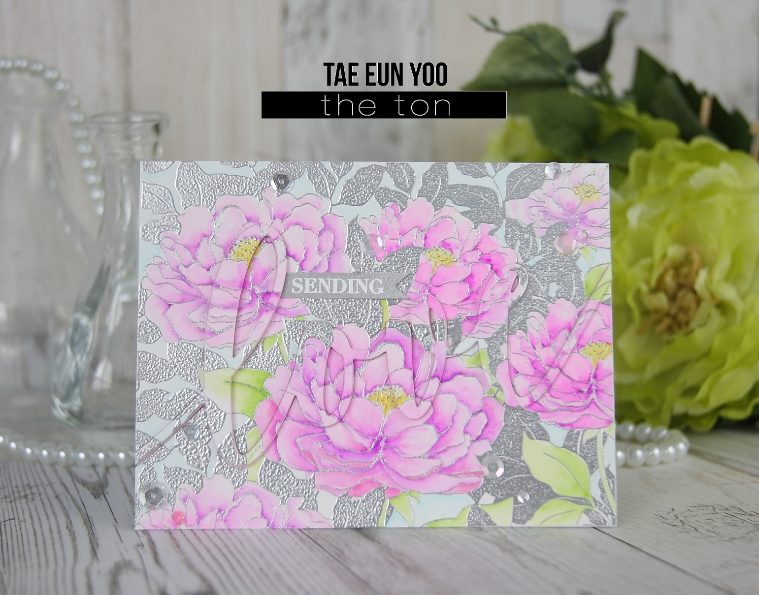 My last card for today and for The Ton’s Spring 2017 Release was made using the gorgeous Peony Crush cling stamp.