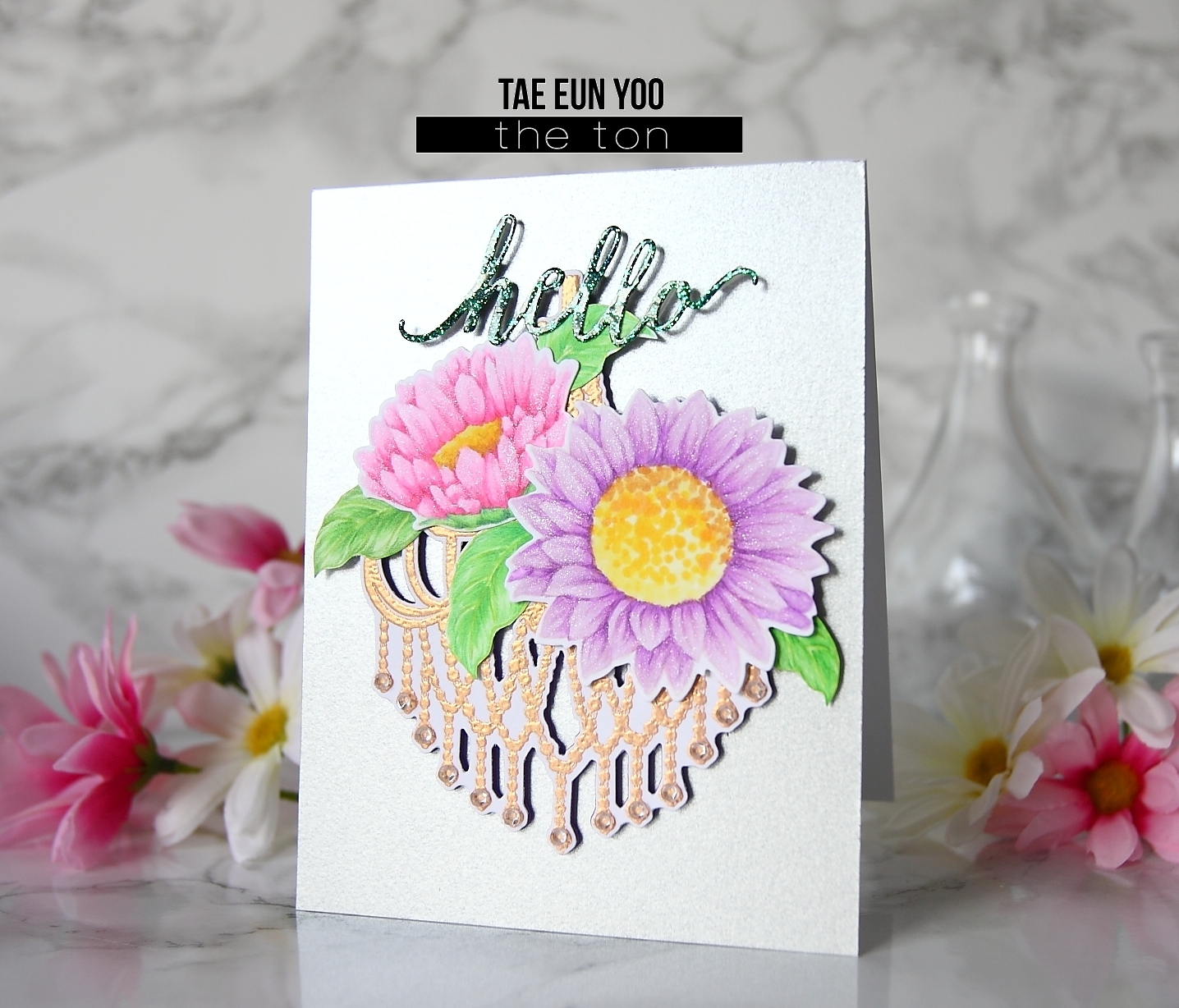 Today I’m on The Ton’s blog with two floral cards. I wanted to transform our sunflower stamps into pretty daisies and colored them in pink and purple, favorite colors of my daughter :)!