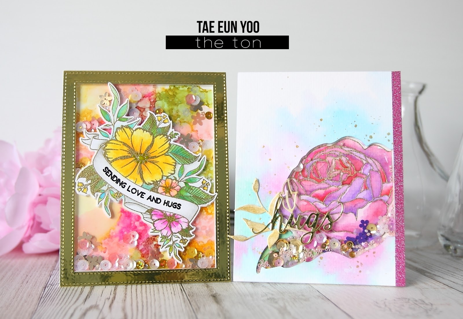 Using floral stamps and coordinating dies it was not that complicated to assemble a shaker card :)!