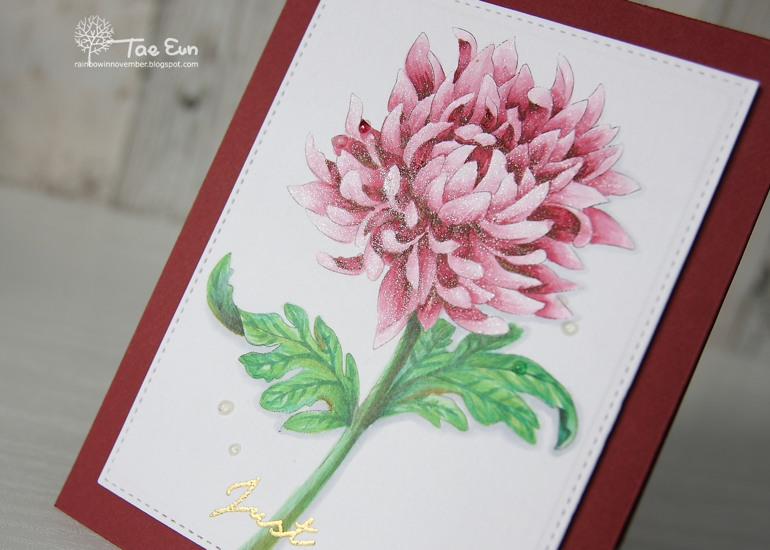 The digi-stamp on my card is called Botanical Chrysanthemum.  If you want to see the gorgeous creation by Eunji click here.