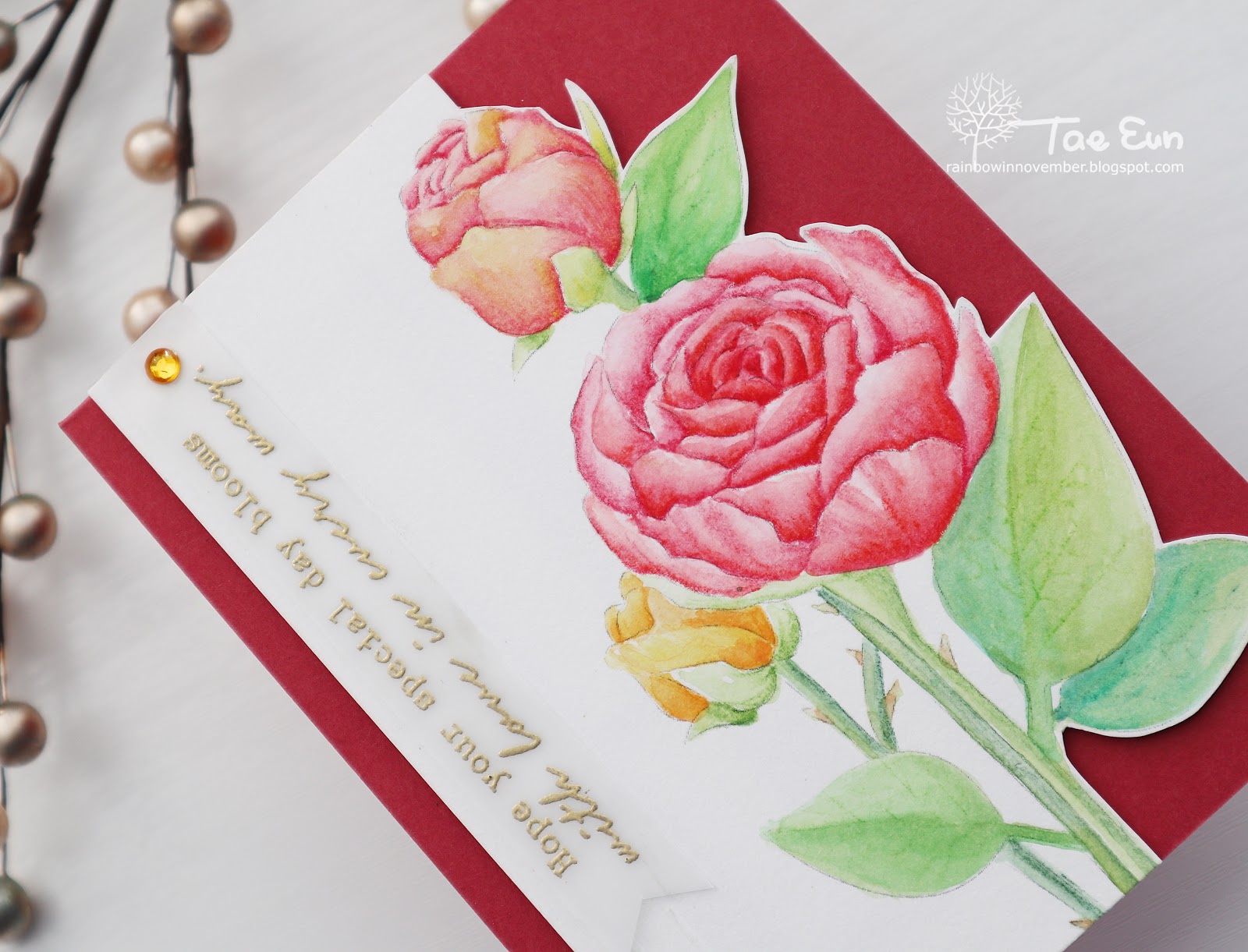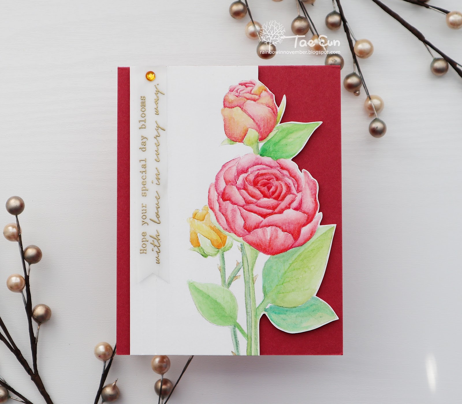 My card is featuring Bouquet Rose Fussy Cut stamp set, one of EunJi’s digital stamps.