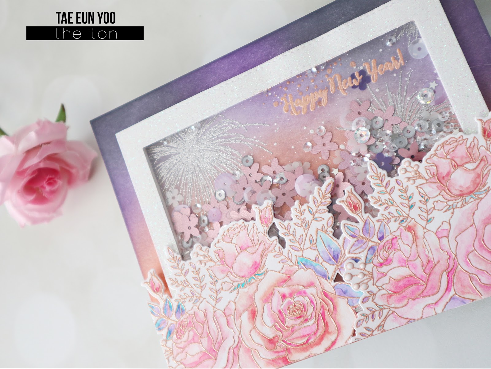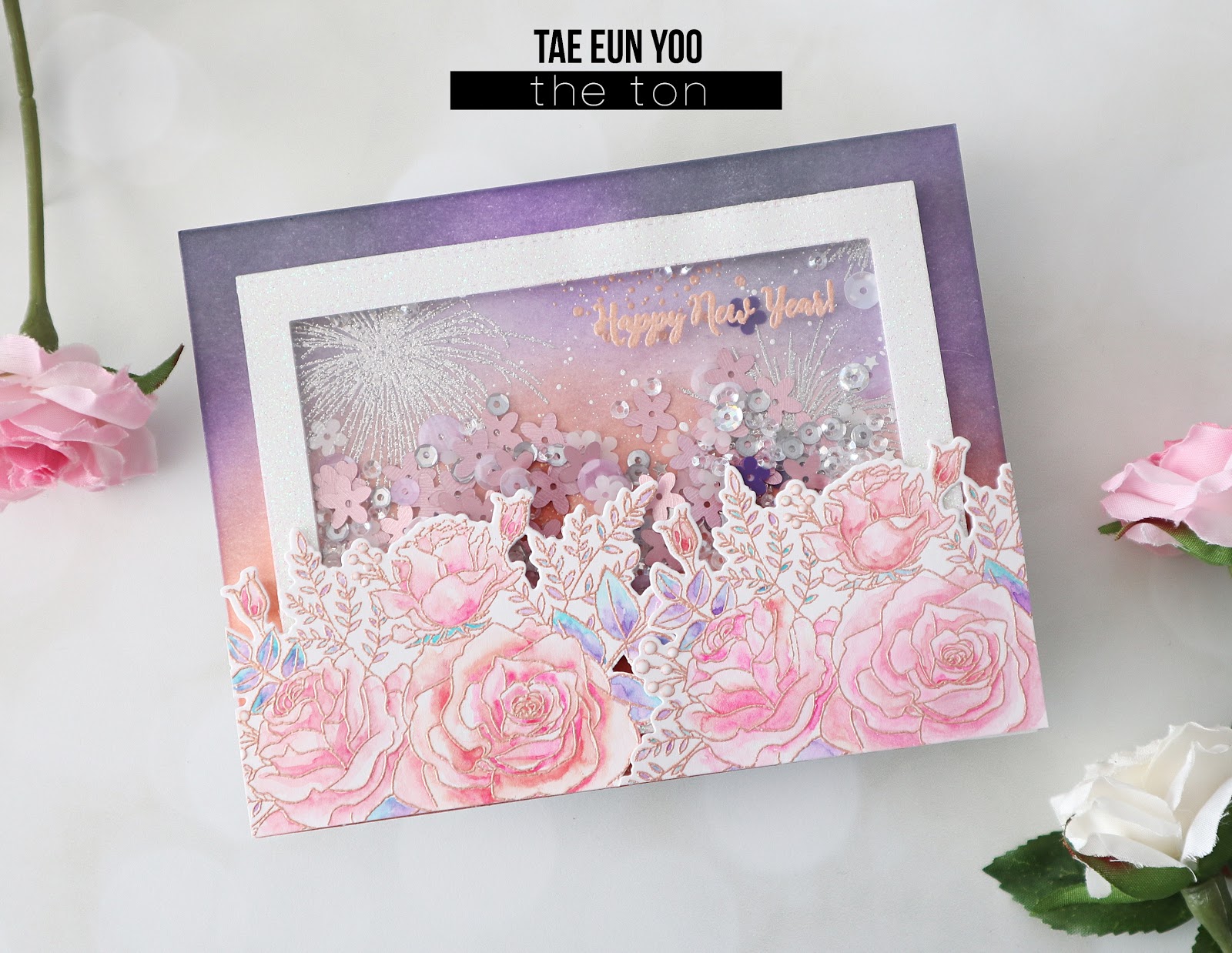 I’ve created a New Year’s shaker card using Country Rose Cluster set. I was thinking of the New Year on the other side of the earth! I imagine the New Year in the south hemisphere like this :)! – Firework in the sky over a field filled with roses!