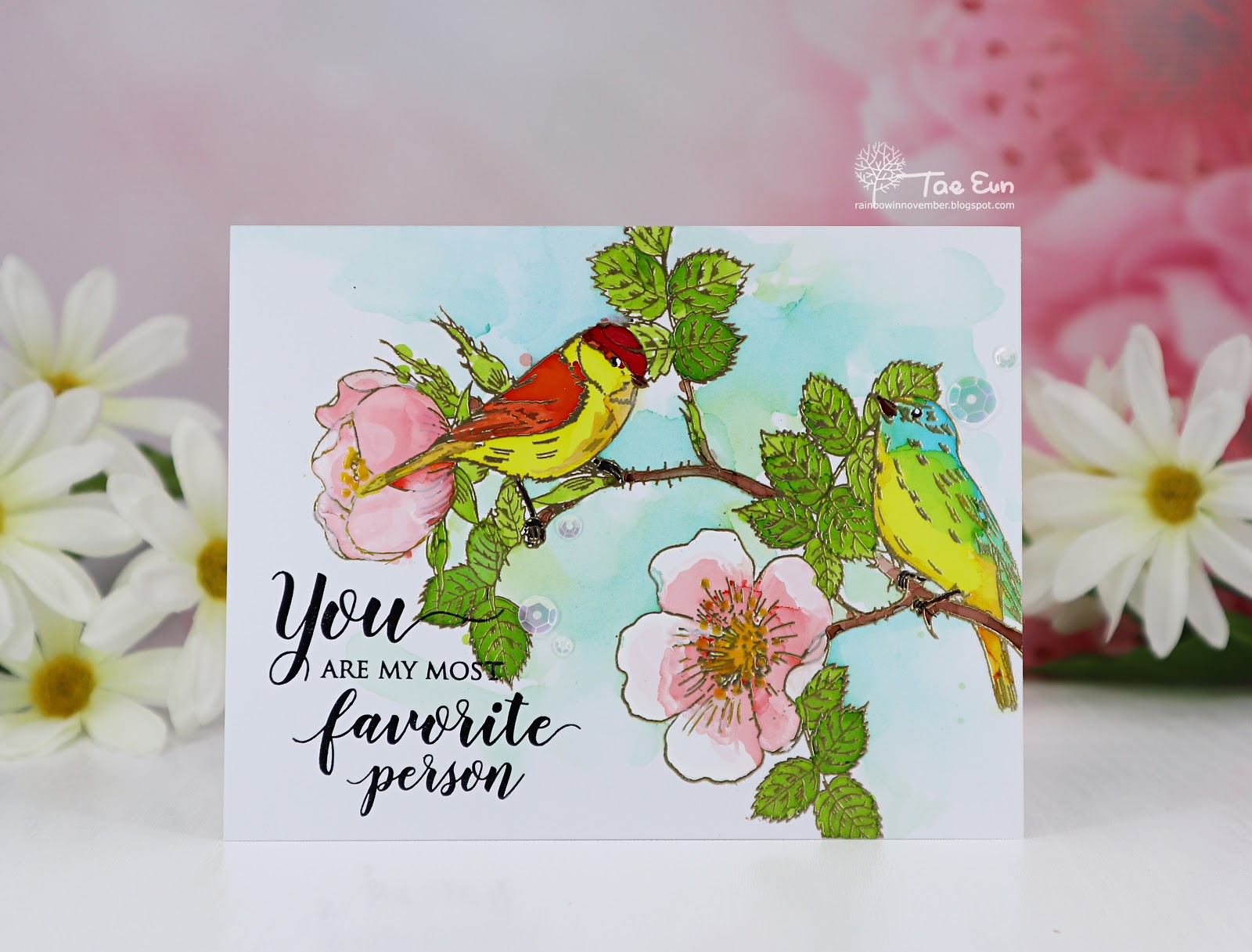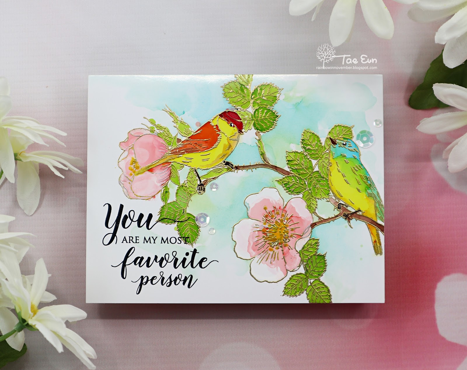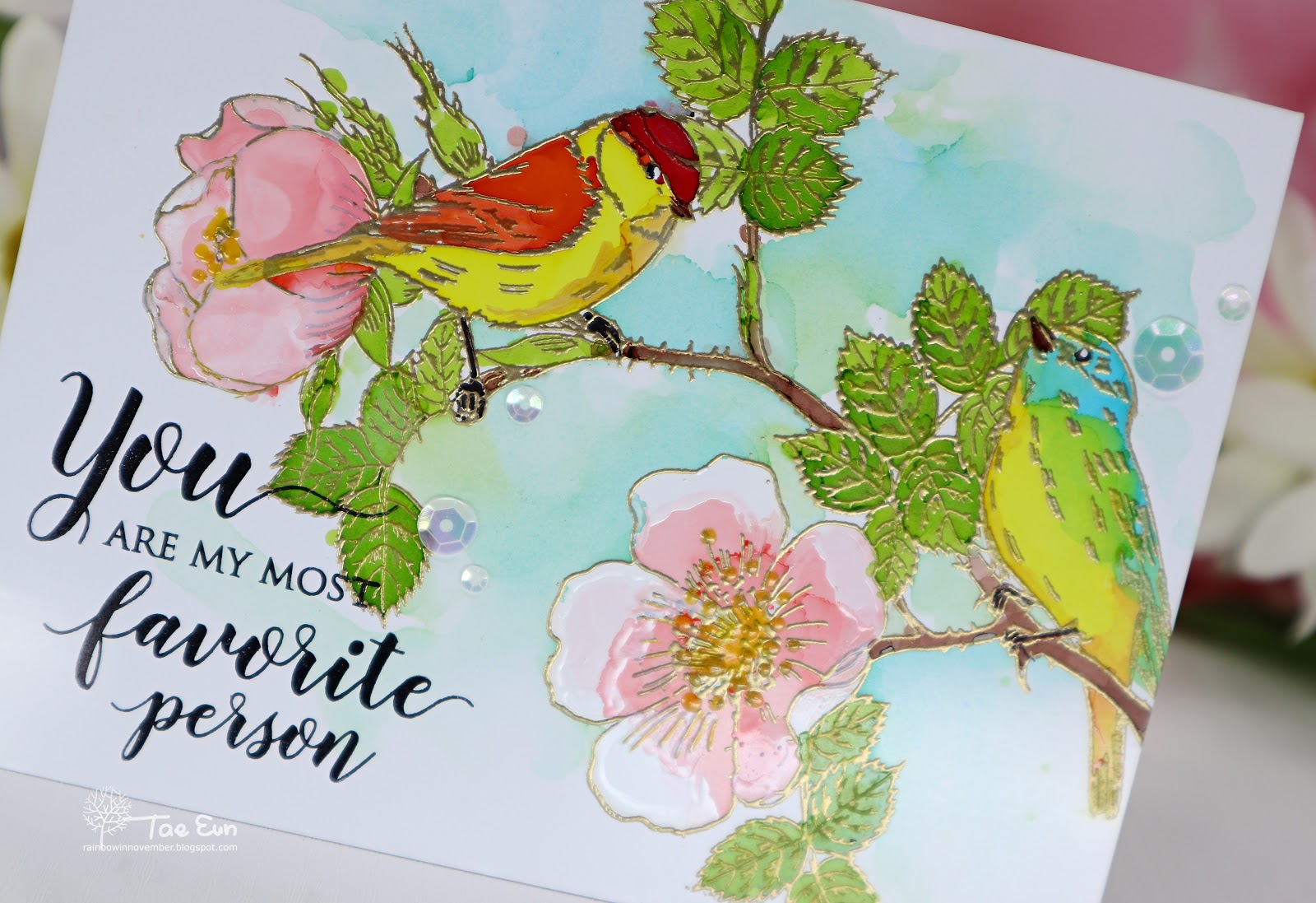 The gorgeous image I used for today’s card is called Melody Makers. The large blossom and sweet birds were calling for alcohol inks when I saw them for the first time :)!