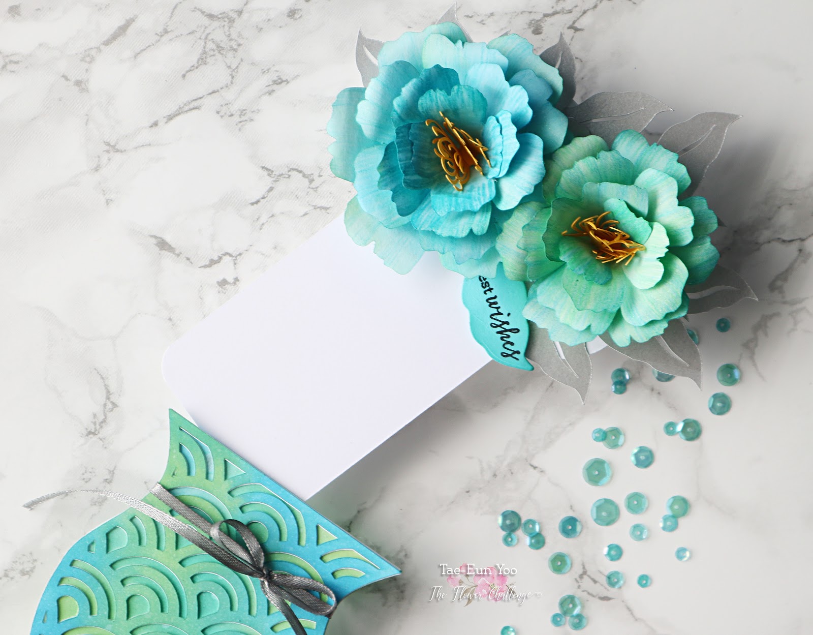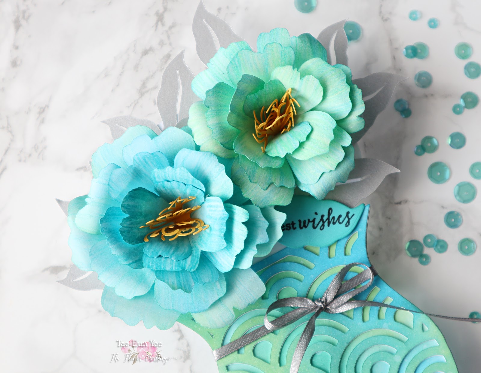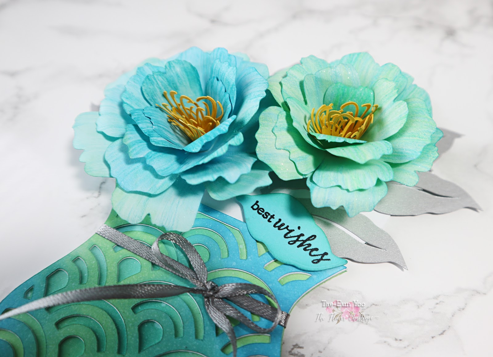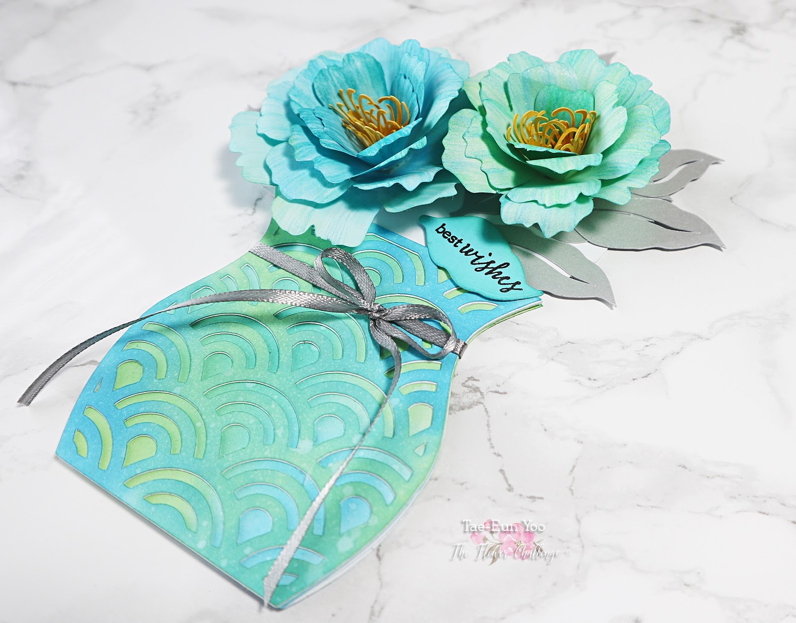 I used the same vase template this time but instead of roll up roses I made two big peonies using Pop Up Peony by The Ton. (I used the cutting file for the Pop Up Peony die.