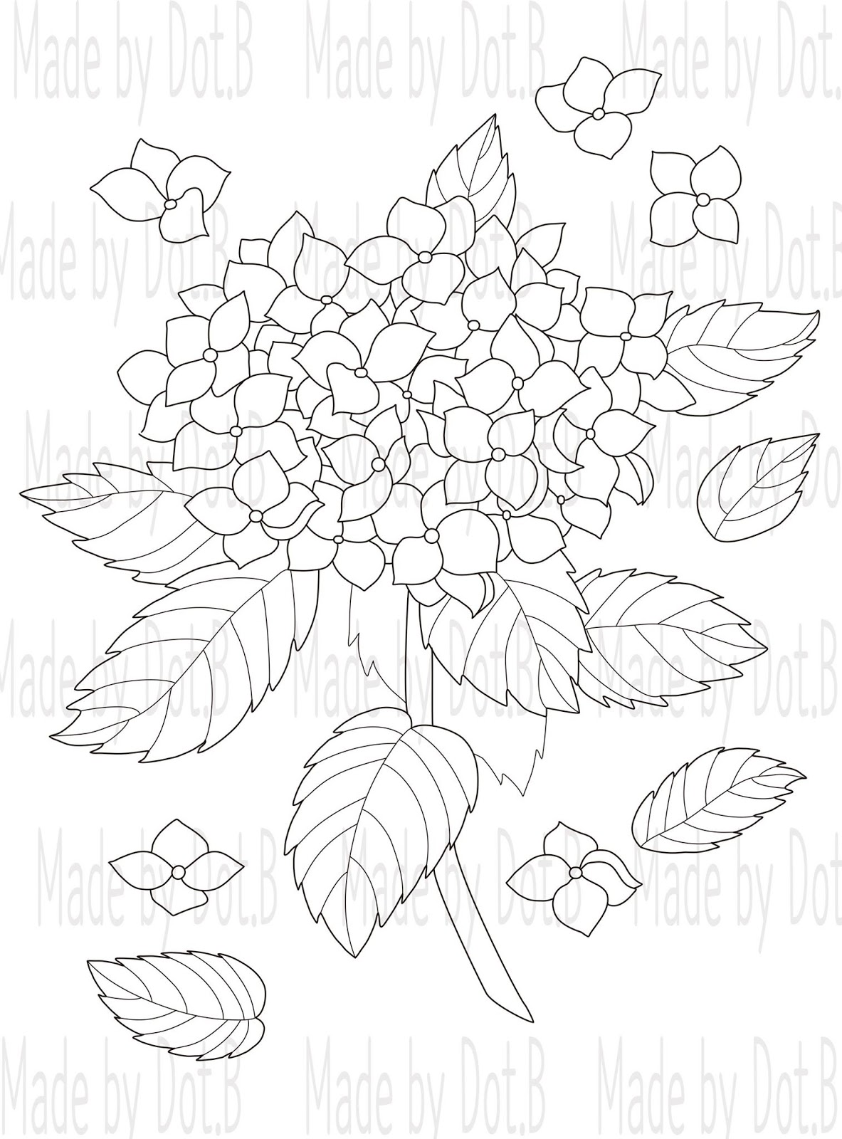 The image I’m using is from EunJi’s new digital stamp set Hydrangea. She released some floral stamps in June on her Etsy shop: DotBStamp and Hydrangea is one of them. It contains three image files.