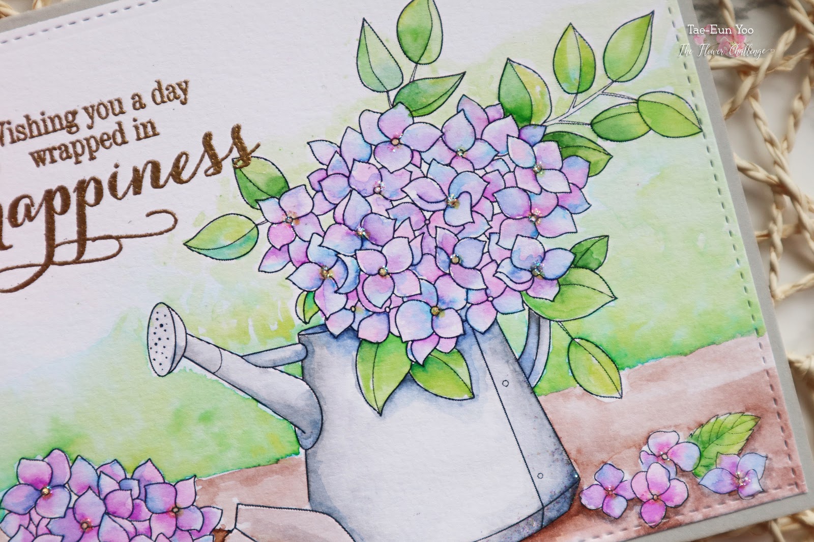 I chose magnolias as my favorite flower at that time. For this challenge I watercolored some hydrangeas, one of my favorite flowers!!!