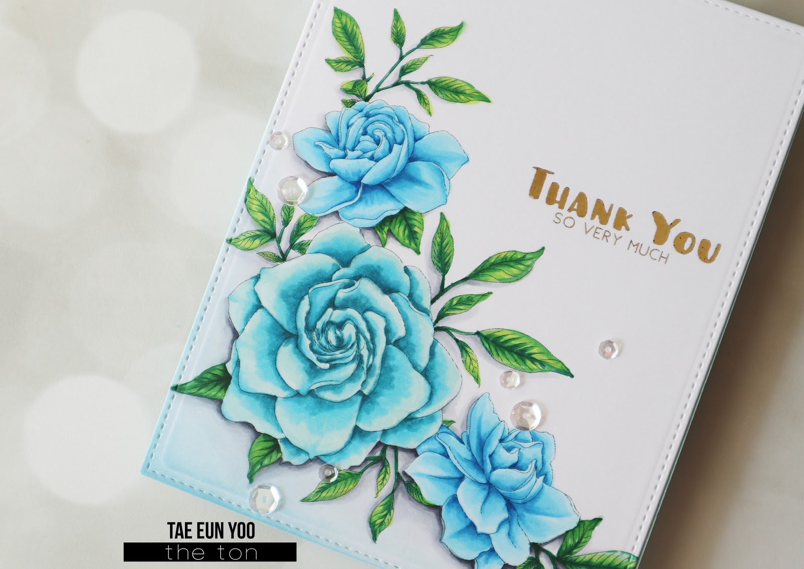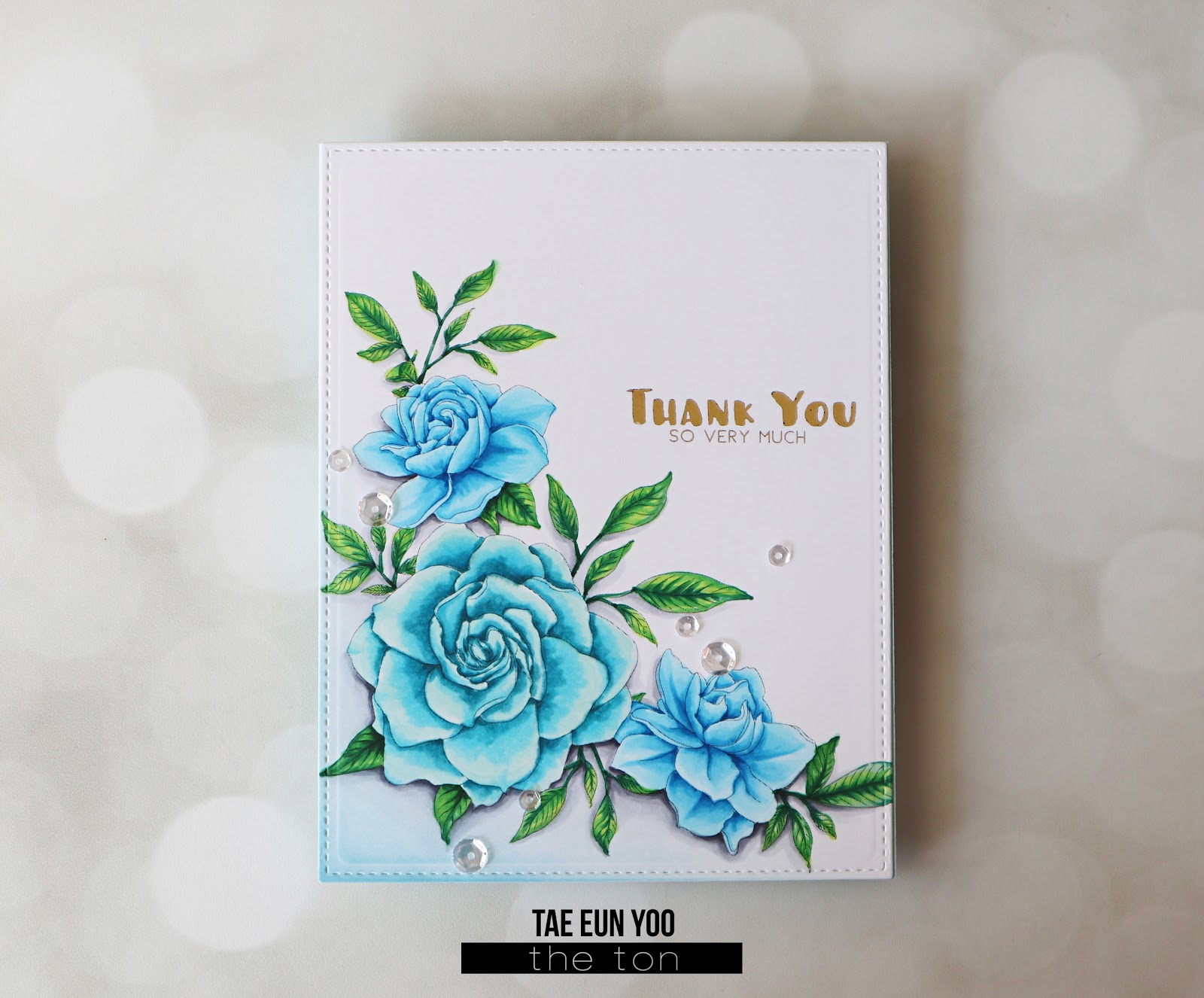 I colored Gardenia Wishes using Copics too. I used BG01, 02, 05 and 09 for the big gardenia and for the small ones I used B00, 02, 05 and 06.