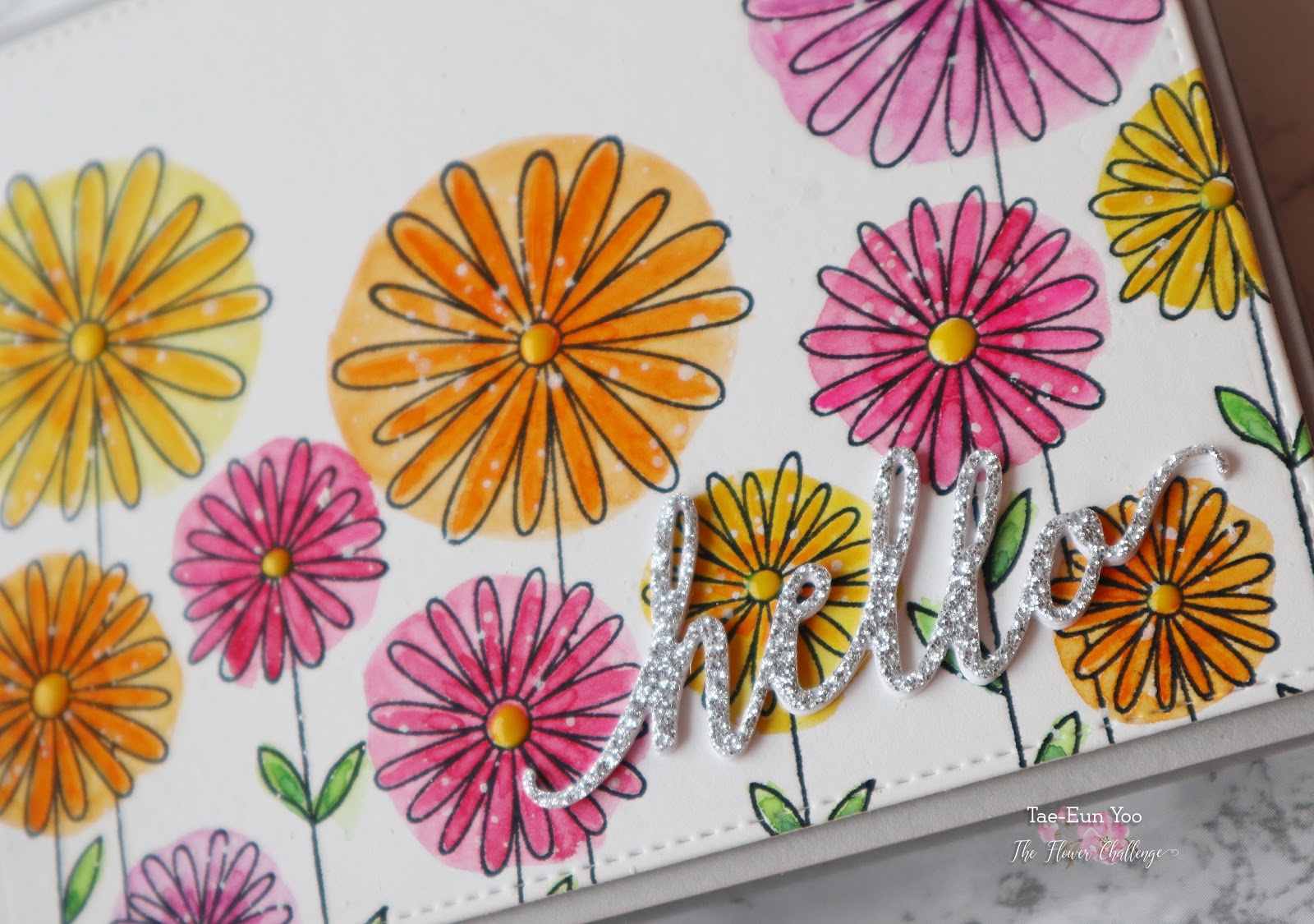 I used an old rubber stamp from Hero Arts, called Daisies.