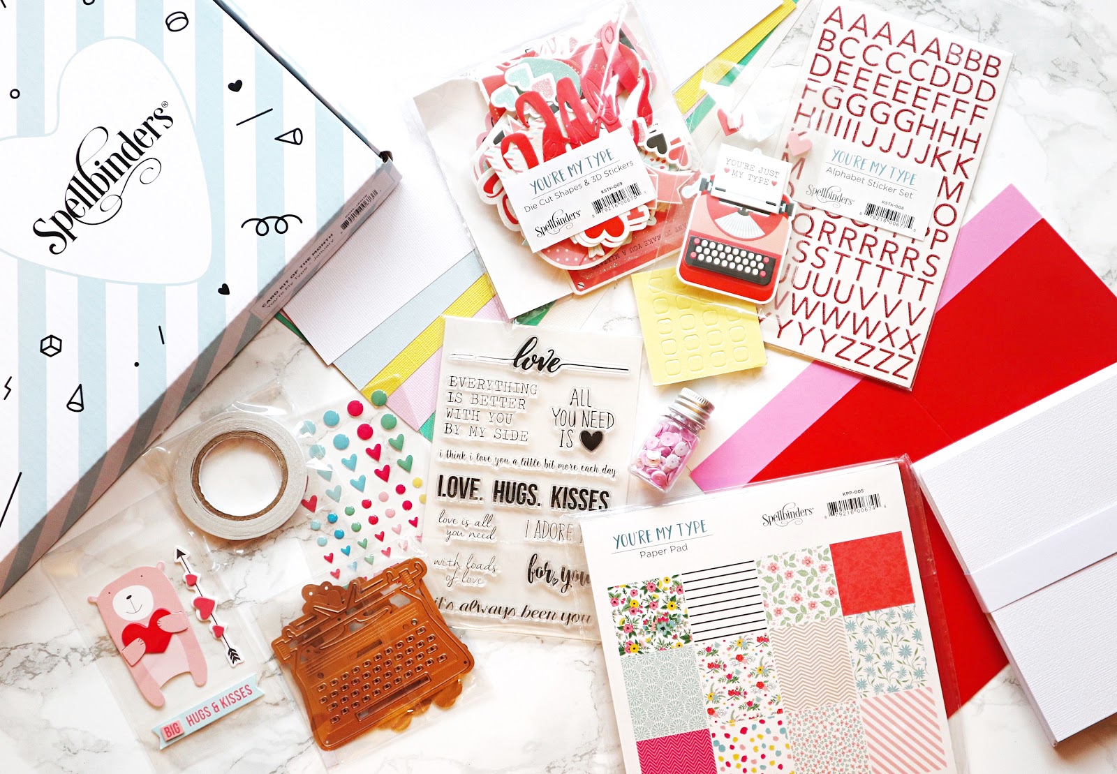 This month’s You’re My Type Card Kit includes a 6×6 paper pad, clear stamps, an adorable die set, tons of embellishments, and more!