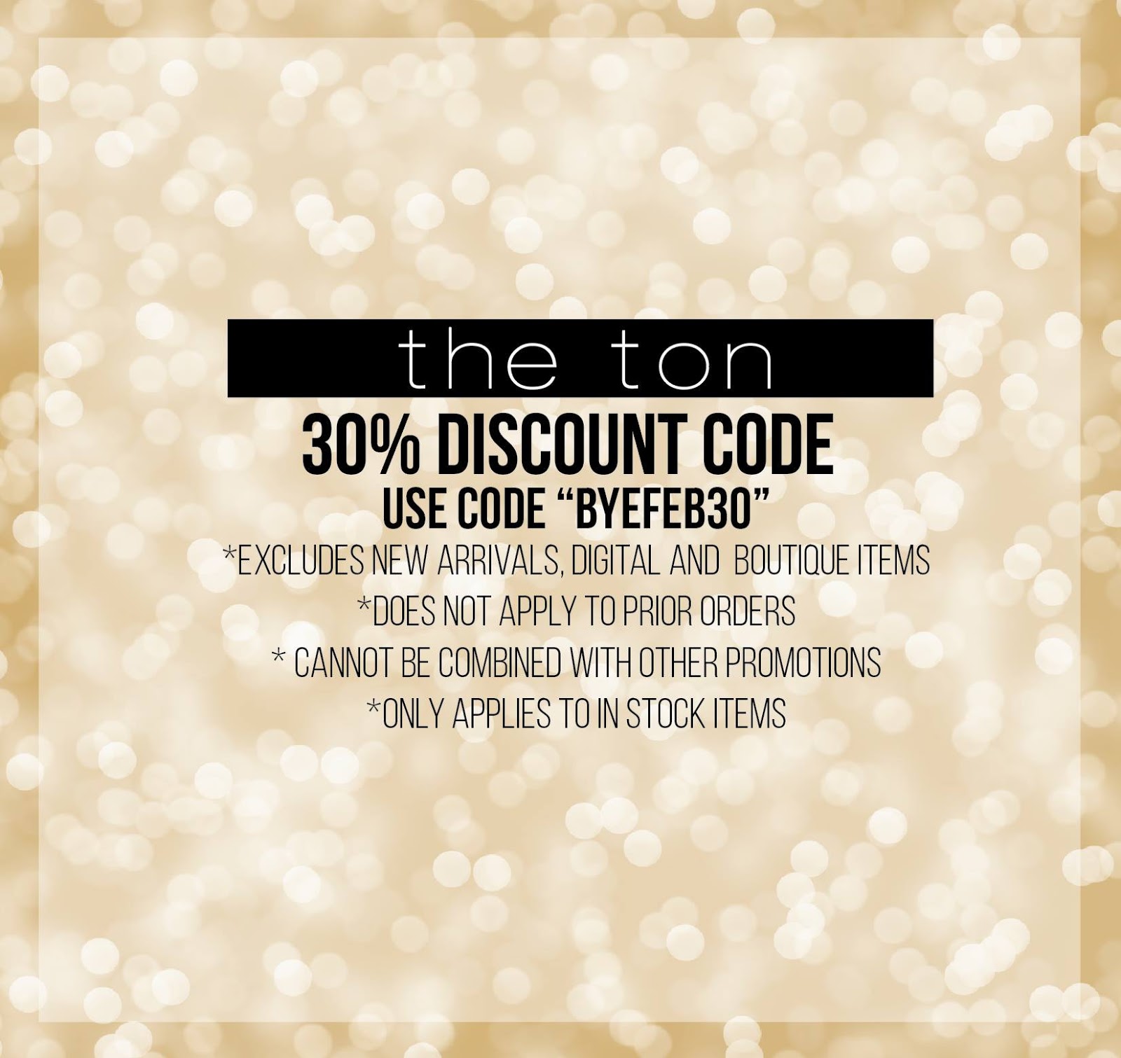There is a discount o30{3ef674c9fd176649c89f9051e814eea51265cffdec397d743062752c782d724e} off running on The Ton shop until this Friday, March 8 at 11:30pm EST. The discount code is BYEFEB30.