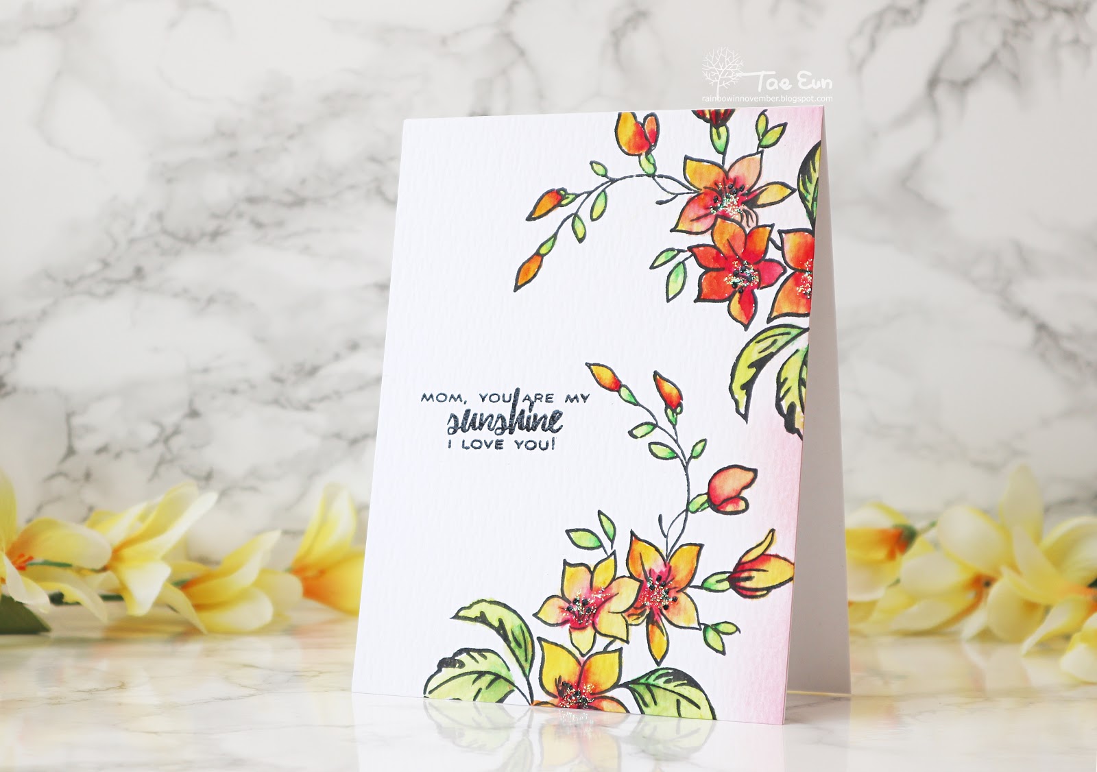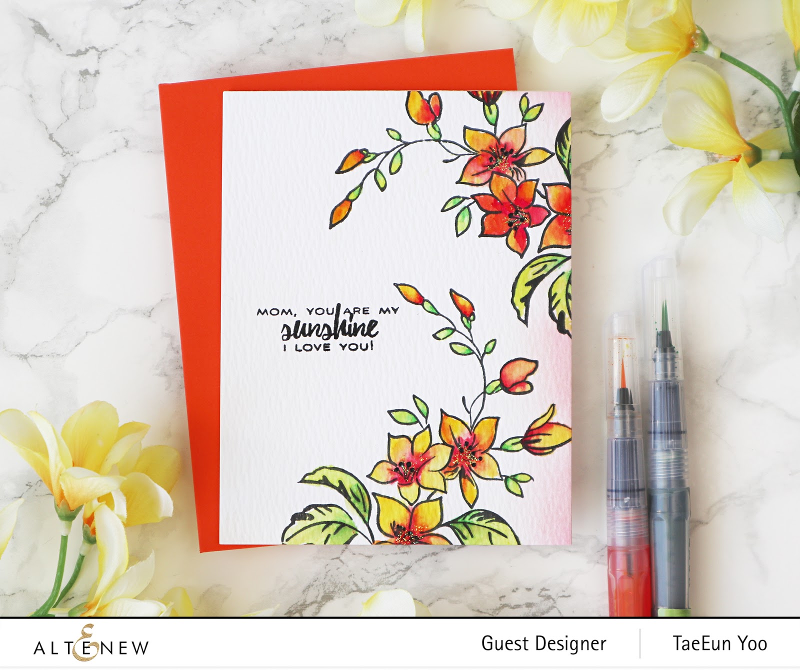 I used here a sentiment for Mom but please use a generic sentiment if you make cards for the card drive. Please refer to the guidelines on the Altenew Blog.