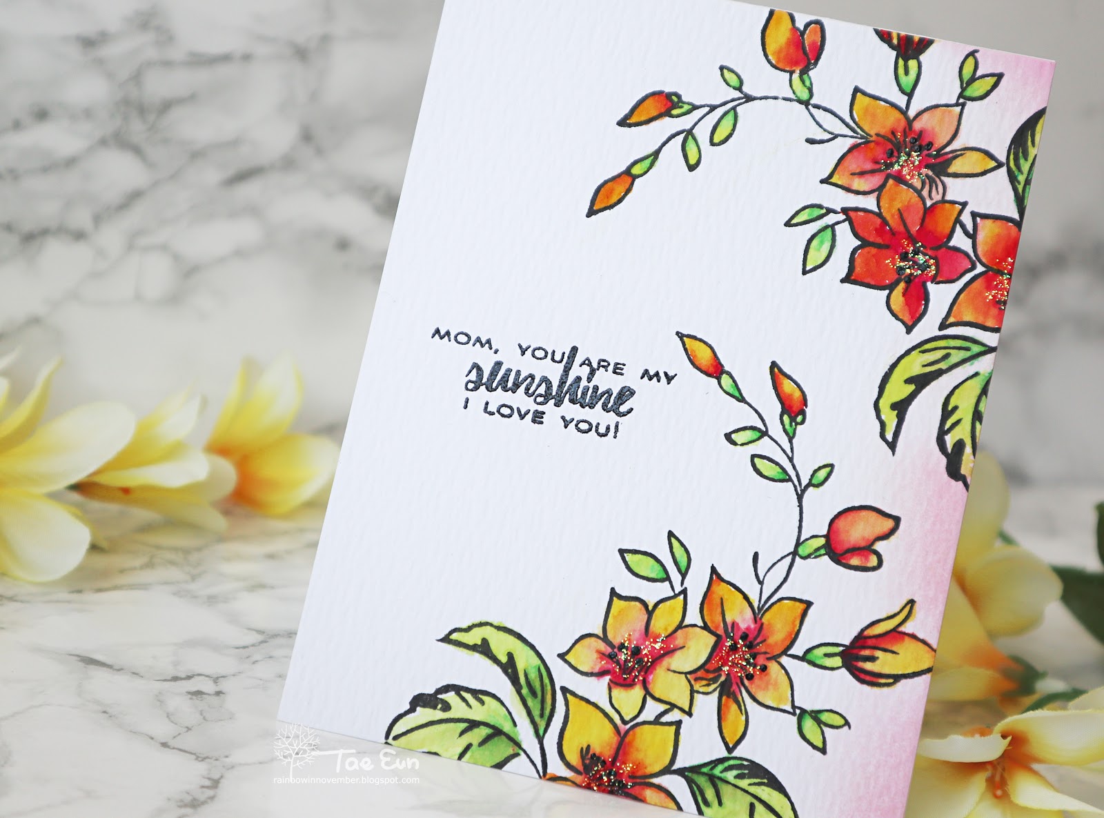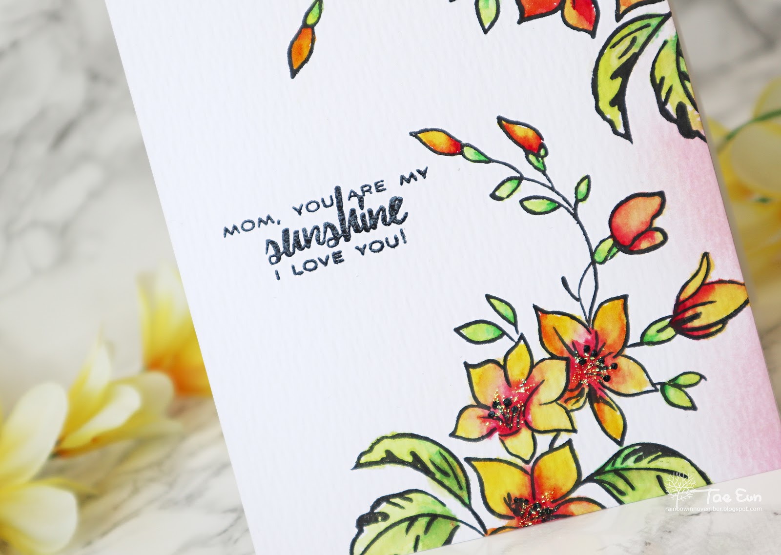 I stamped the image from Best Mom two times on Ranger watercolor paper in black pigment ink and watercolored them using Altenew Watercolor Brush Markers.