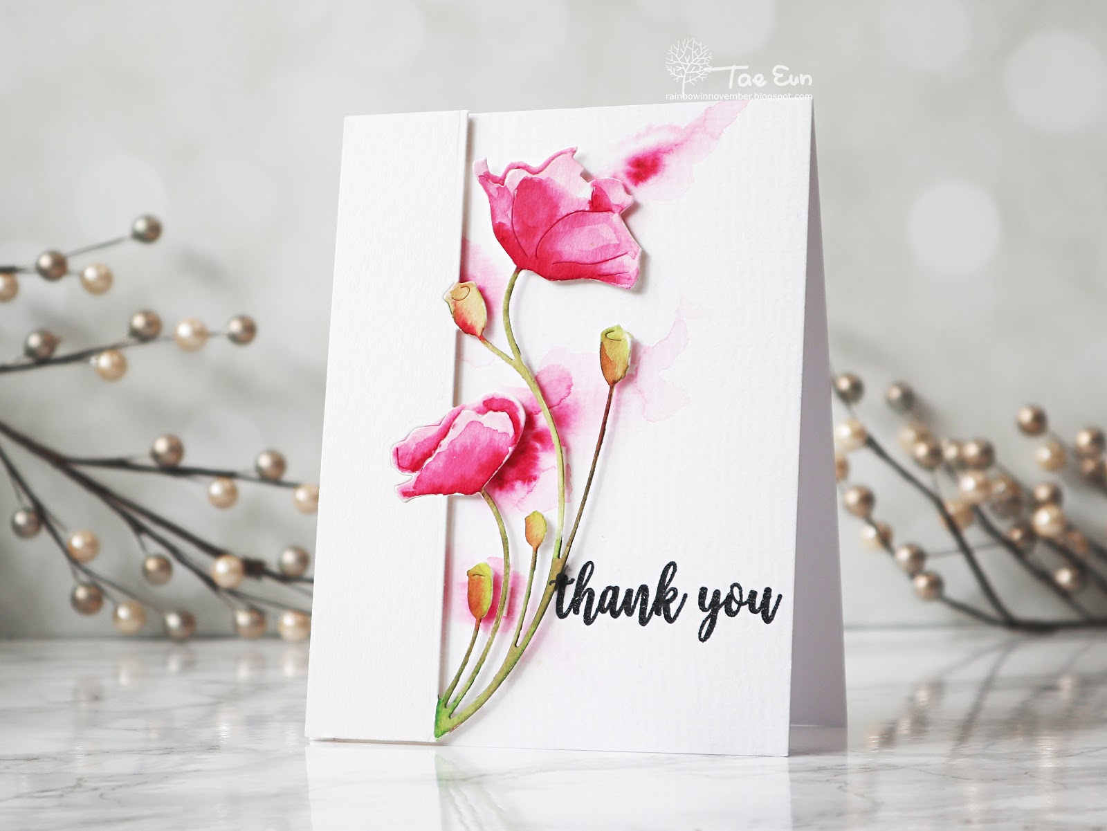 I’m popping in to share a CAS card I made for the CAS Watercolor April Challenge.  The theme is POPPY and It’s perfect to give some love to my new Poppy Edger die (51-507) by Penny Black.
