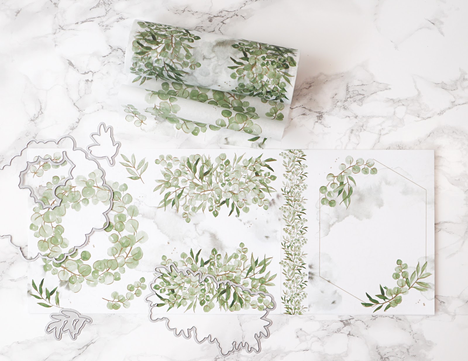 To this card I simply added some floral cluster and leafy elements which were die cut from Painted Florals washi tape and Eucalyptus Fantasy washi tape.