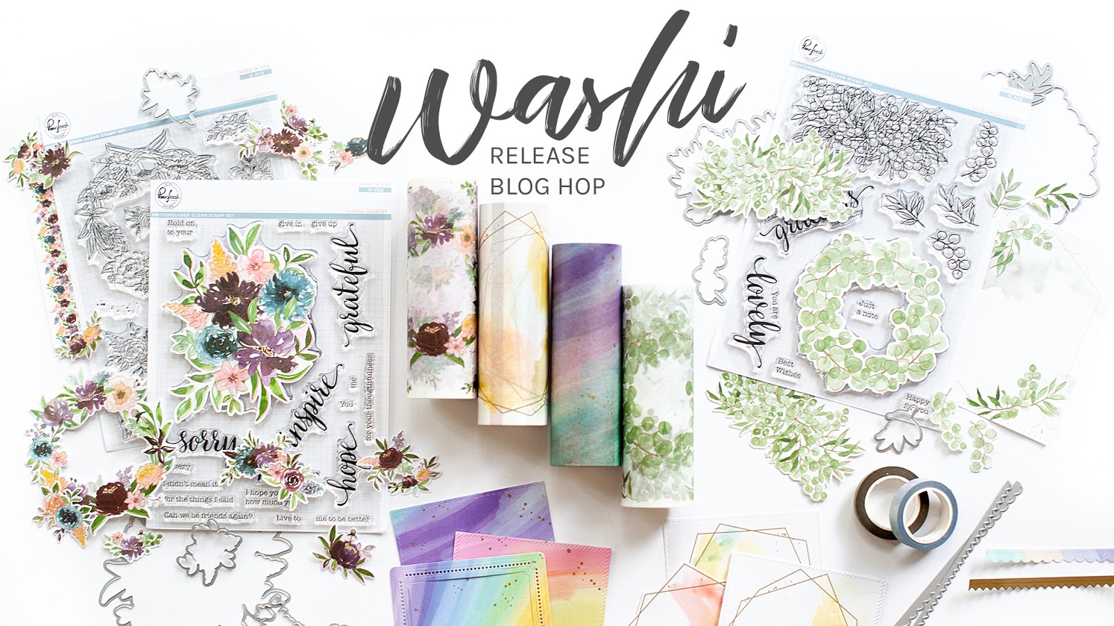 I’m so excited to be a stop on this special blog hop celebrating new Washi tape release by Pinkfresh Studio! Four 5.5 inch wide washi tapes and two thin washi tapes are debuting today. But it’s not all!!! There are coordinating stamp sets and die sets included in this release! How awesome!!! You can cut the pretty images on the washi tapes using the coordinating dies and add your own color on the same image using the stamp sets! This is genius!