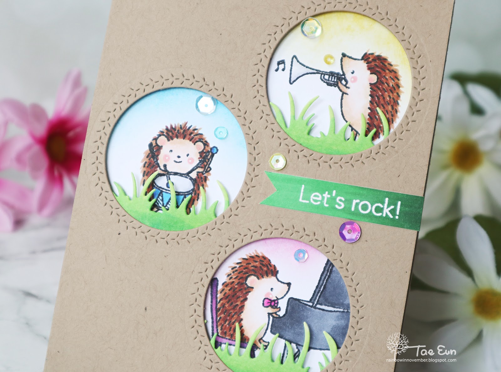 Next card is featuring Hedgie Harmony (30-589) set and Stitched Circles(51-551) die set