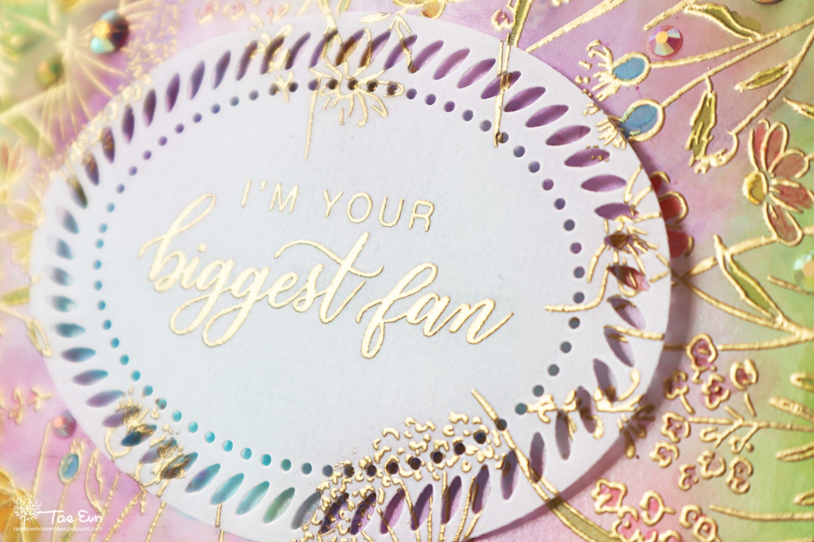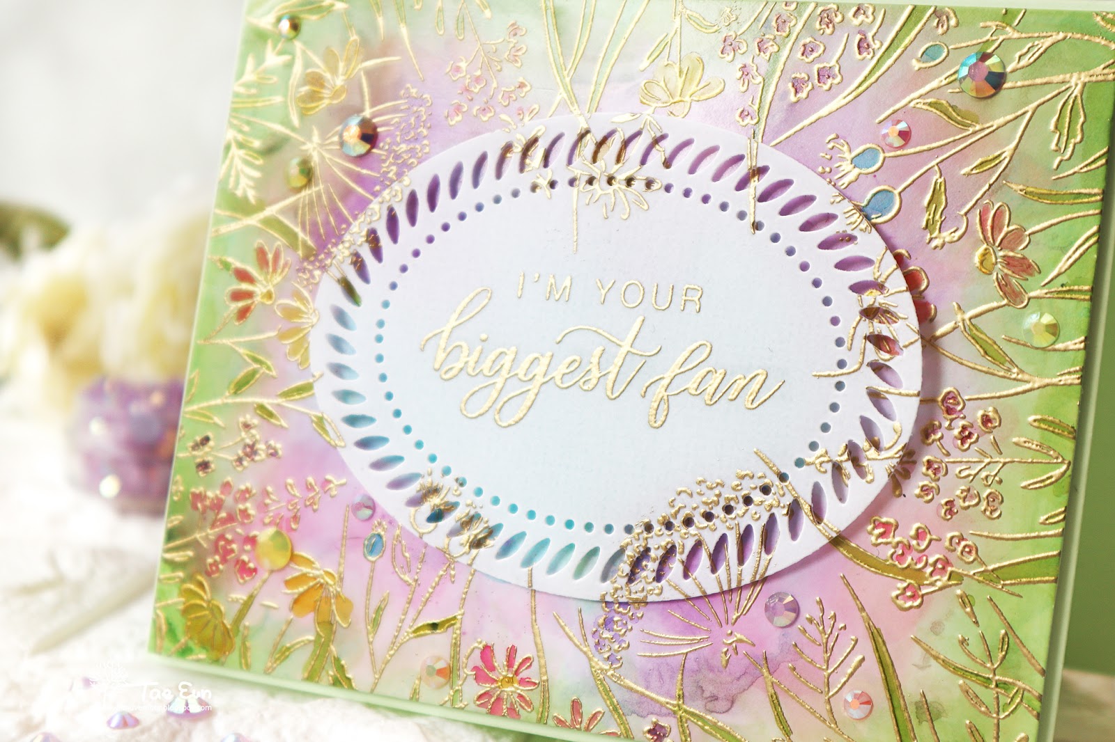 The sentiment is also from You Make A Difference set. I gold heat embossed it on a thick vellum. I gold heat embossed the image as well as I wanted it continue on the vellum panel. I cut the vellum panel using the smaller die of Braided Oval die set.