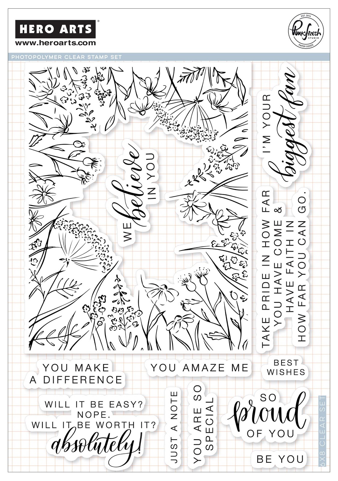 I’m so excited and honored to be part of this special blog hop celebrating 45 years Hero Arts has been with paper crafters! This month Pinkfresh Studio is collaborating with Hero Arts with this gorgeous stamp set, called You Make A Difference! This stamp set is featuring a border image of wild flowers and many gorgeous sentiments. You can purchase this stamp set also on Pinkfresh Studio shop!