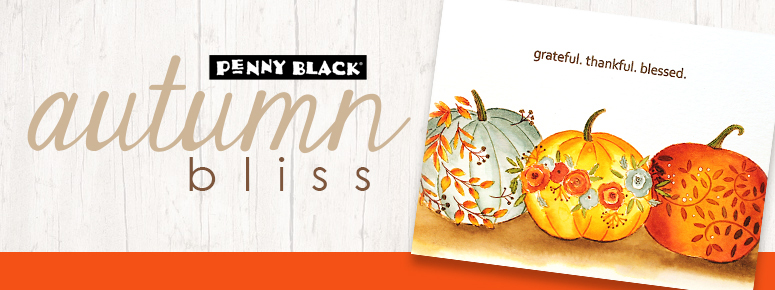 I had the pleasure to play with Penny Black’s Autumn Bliss release stamp and die sets recently. For today’s cards I chose the dainty and natural stamp sets: Acorn and Animals(30-599), Golden Delight (30-601) and Autumn Bliss(30-600).