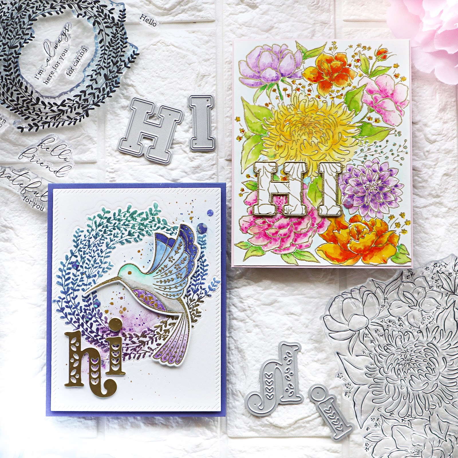I’m on Pinkfresh Studio’s blog today with a couple of cards I made using some of the new stamp sets from the August release. The main features of my cards are watercoloring and die cut sentiments 🙂 !!!