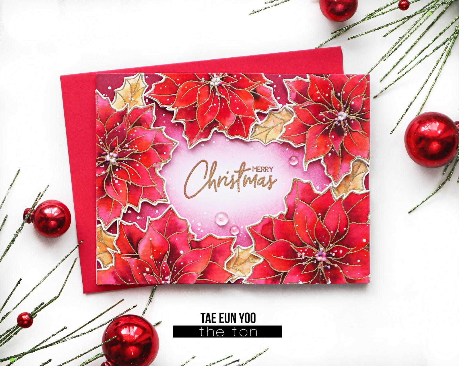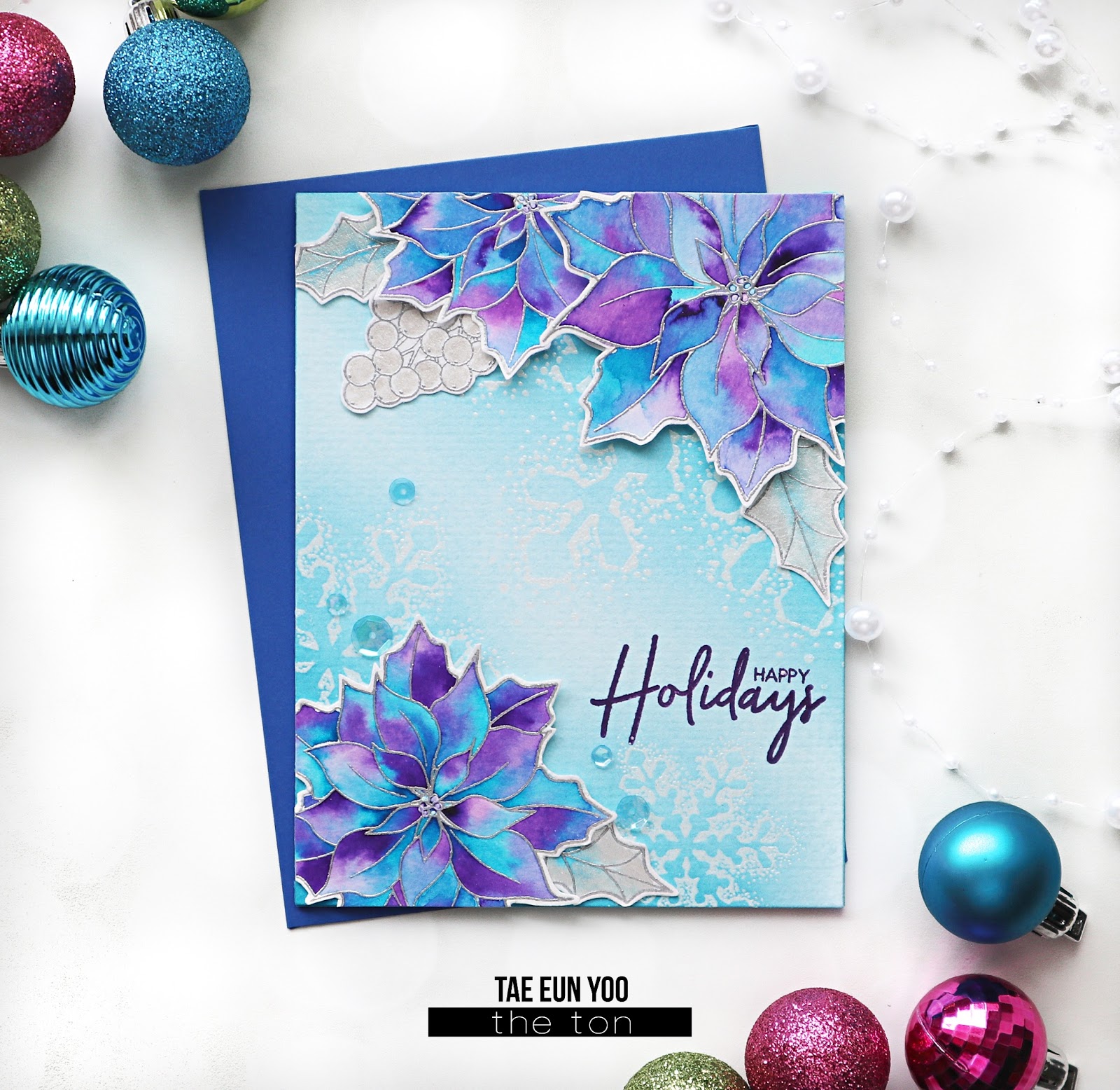I’m on The Ton’s blog today with a couple of holiday cards made using Loose Poinsettias stamp set from the latest release. I watercolored several poinsettias using Color Burst in red and blue hues and made one card in red and the other one in blue-purple. Which one do you like more?
