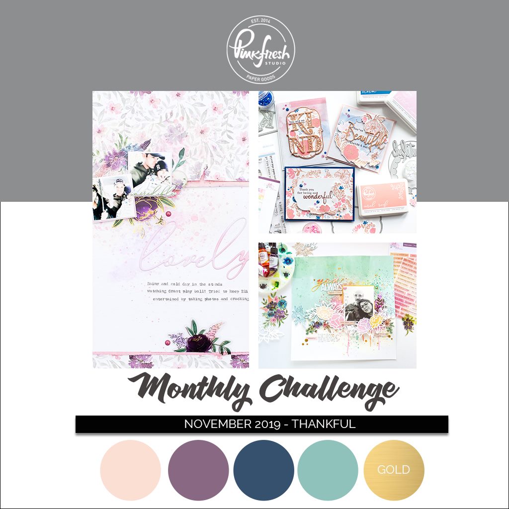 It’s time for a new monthly challenge at Pinkfresh Studio! For November we have “Thankful” as the theme of the month with an elegant color combination.
