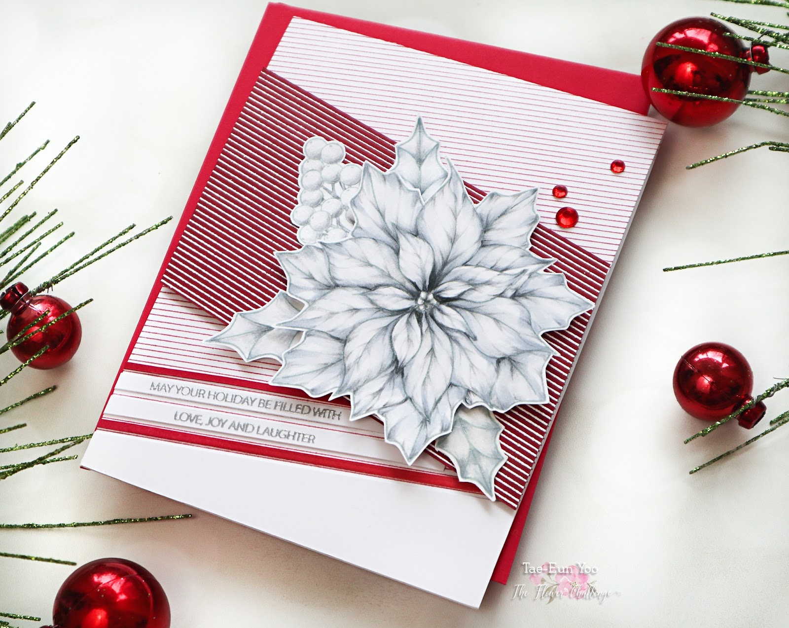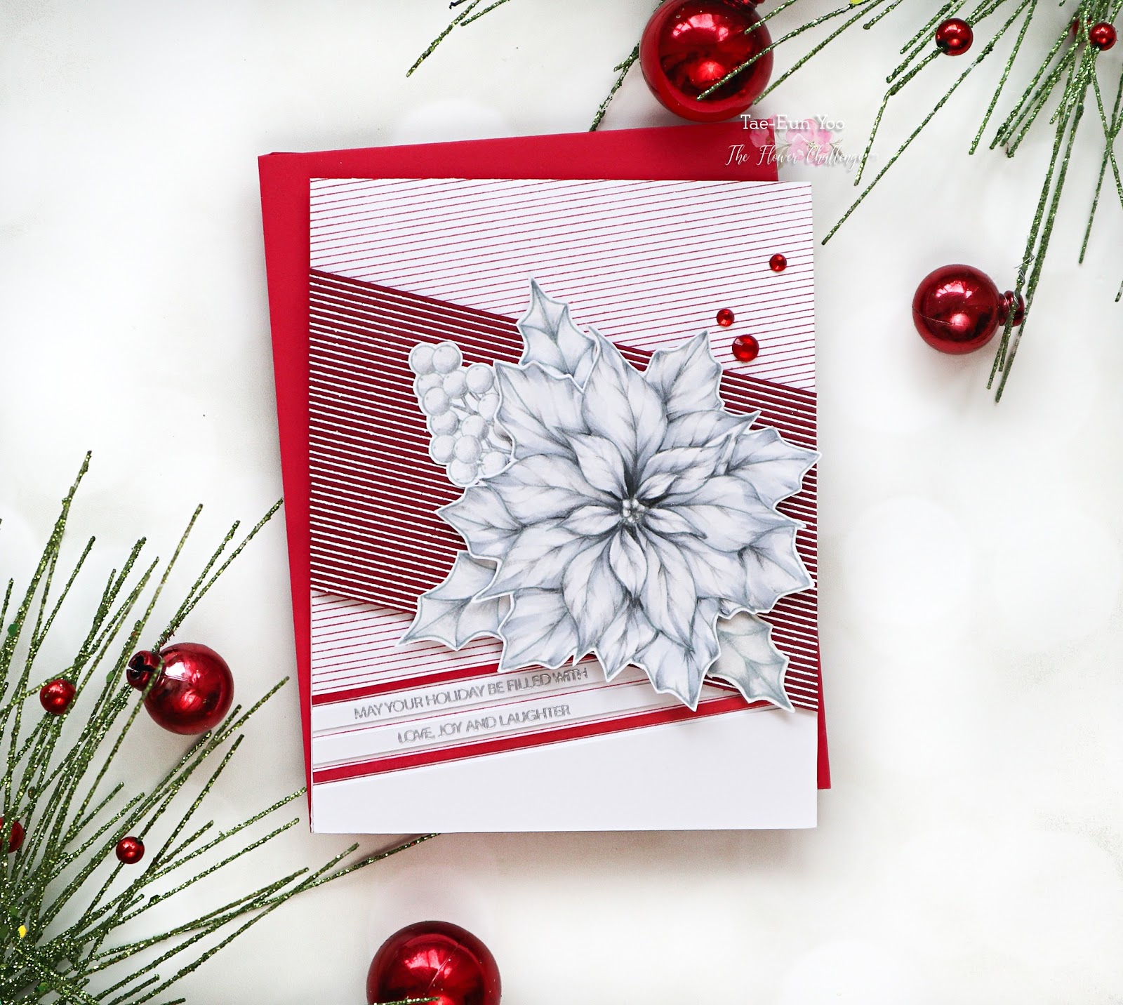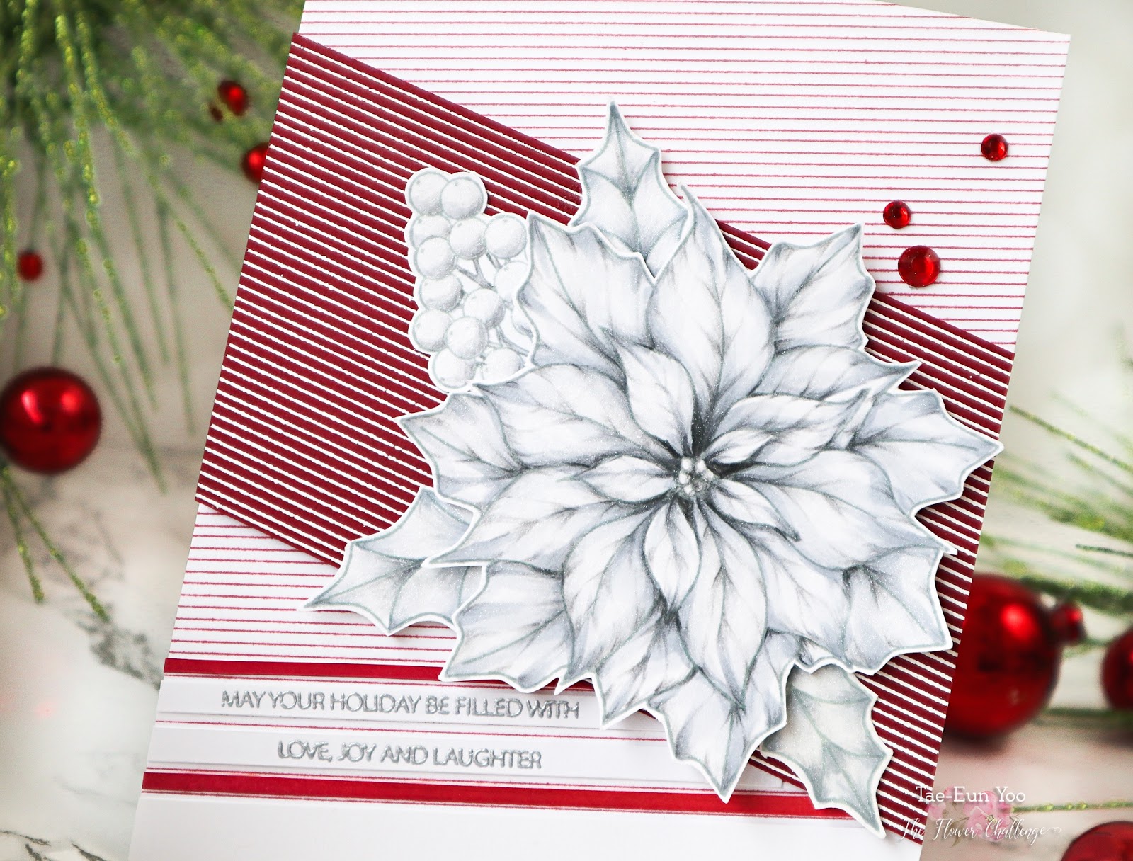 I made a holiday card with lots of fine stripes 🙂 ! I used Loose Poinsettias and Basic Stripes set by The Ton.
