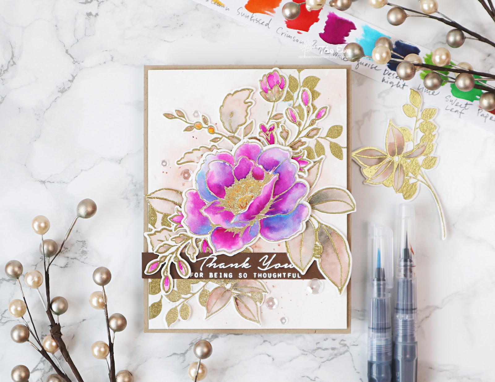 Next flowers from Wallpaper Art stamp set were no-line watercolored using Altenew Watercolor 36 pan set. I shared this card on Altenew March 2019 Release blog hop post.