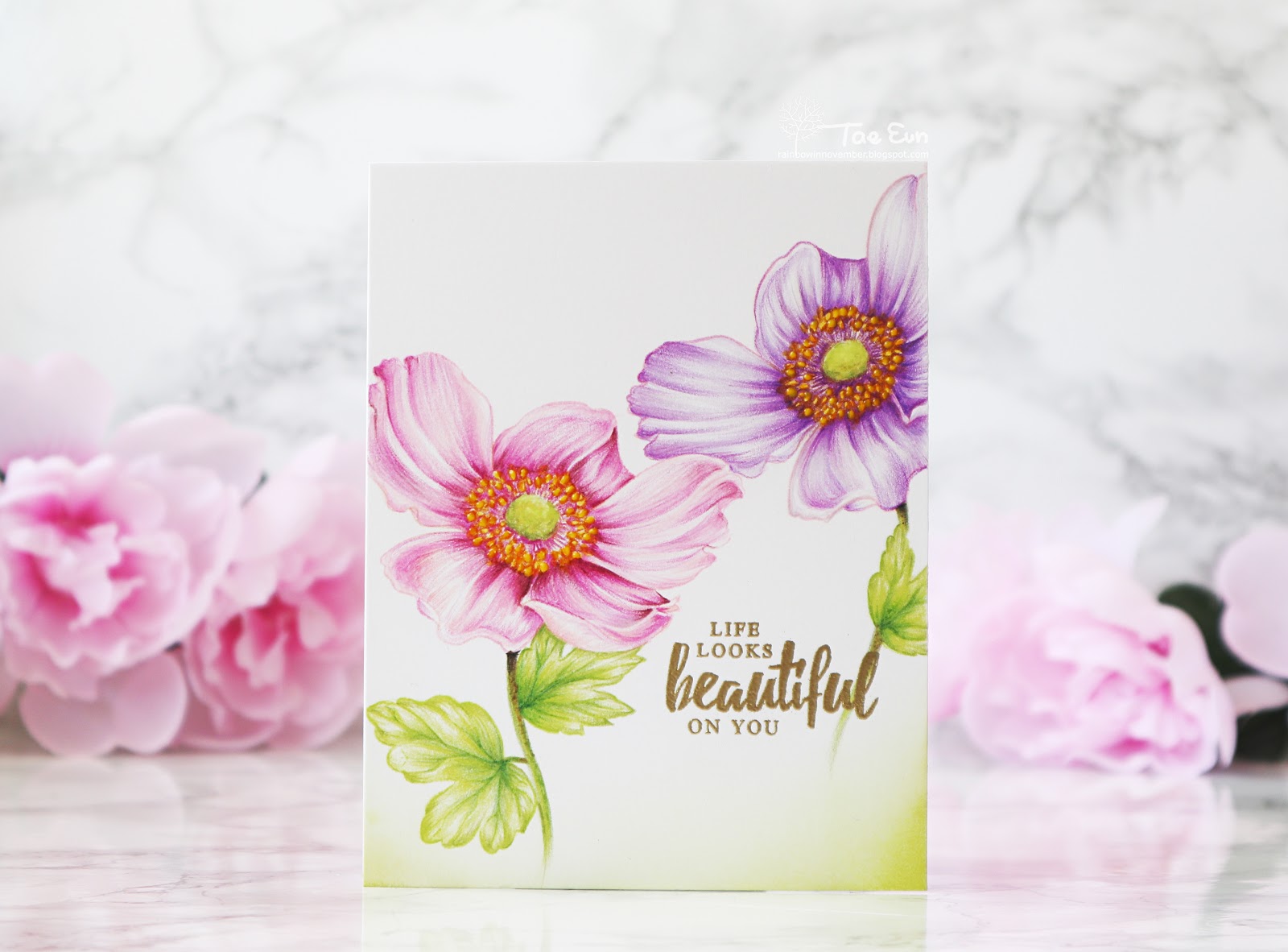 On Altenew 5th Anniversary Blog Hop I shared two cards I colored using colored pencils. They are both my favorites from my projects of this year. This Anemones from Build-A-Flower: Anemone set were colored using Polychromos and Prismacolor colored pencils. I really loved how they turned out :)!
