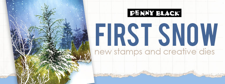 I have three holiday cards to share with you. I made them using some new goodies from First Snow Release by Penny Black. I used gold for all of my cards for today, as an accent or as a main color.