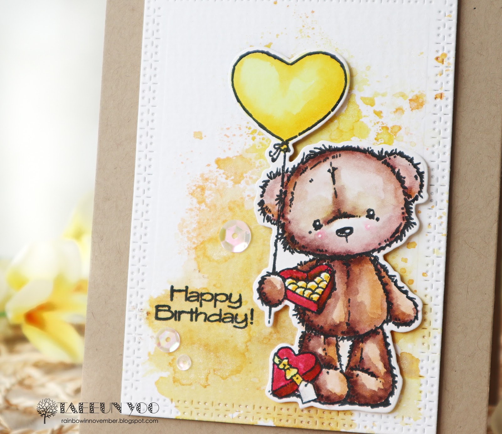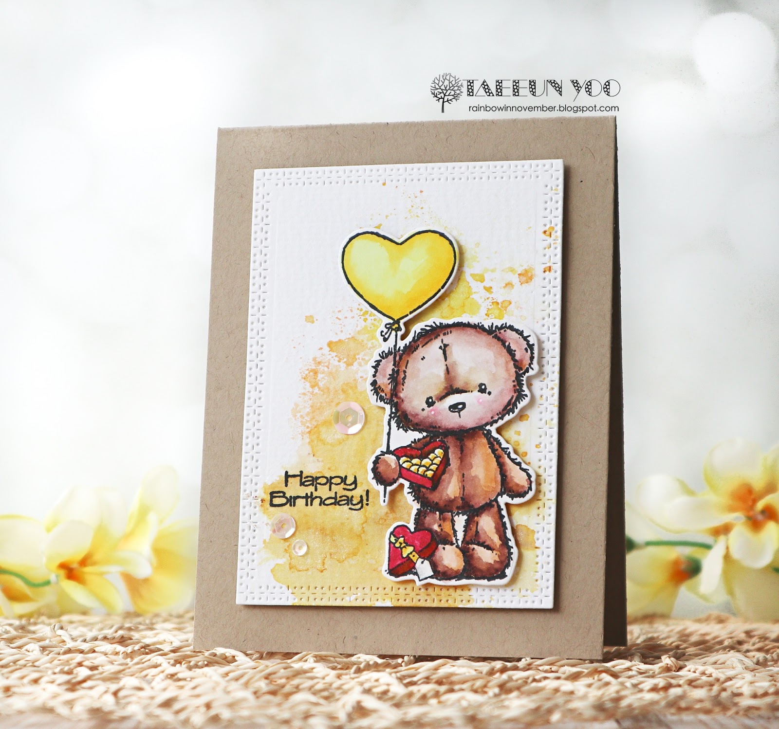 This sweet bear from Penny Black, called Little Charmer (30-662), has been on my desk and wanted to be featured in my card 🙂 !
