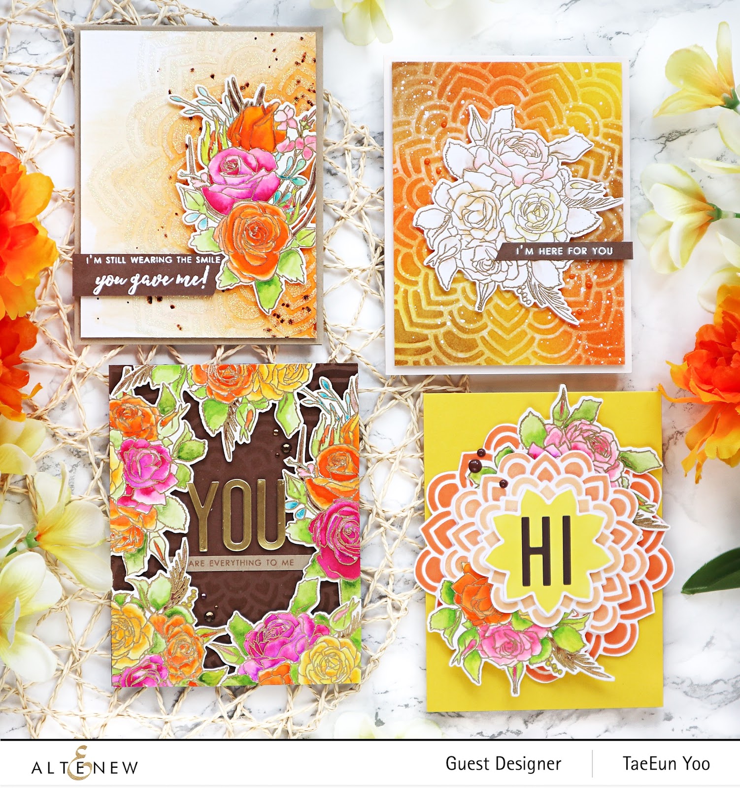Today I’m guest designing on Altenew Card blog. I’ve been invited to join Altenew Card blog to inspire you using the Forever Floral Creativity kit. This kit includes  Forever and Always Stamp & Die Bundle, Fine Alphabet Die set, Floral Mandala Stencil and the Inspiration guide.