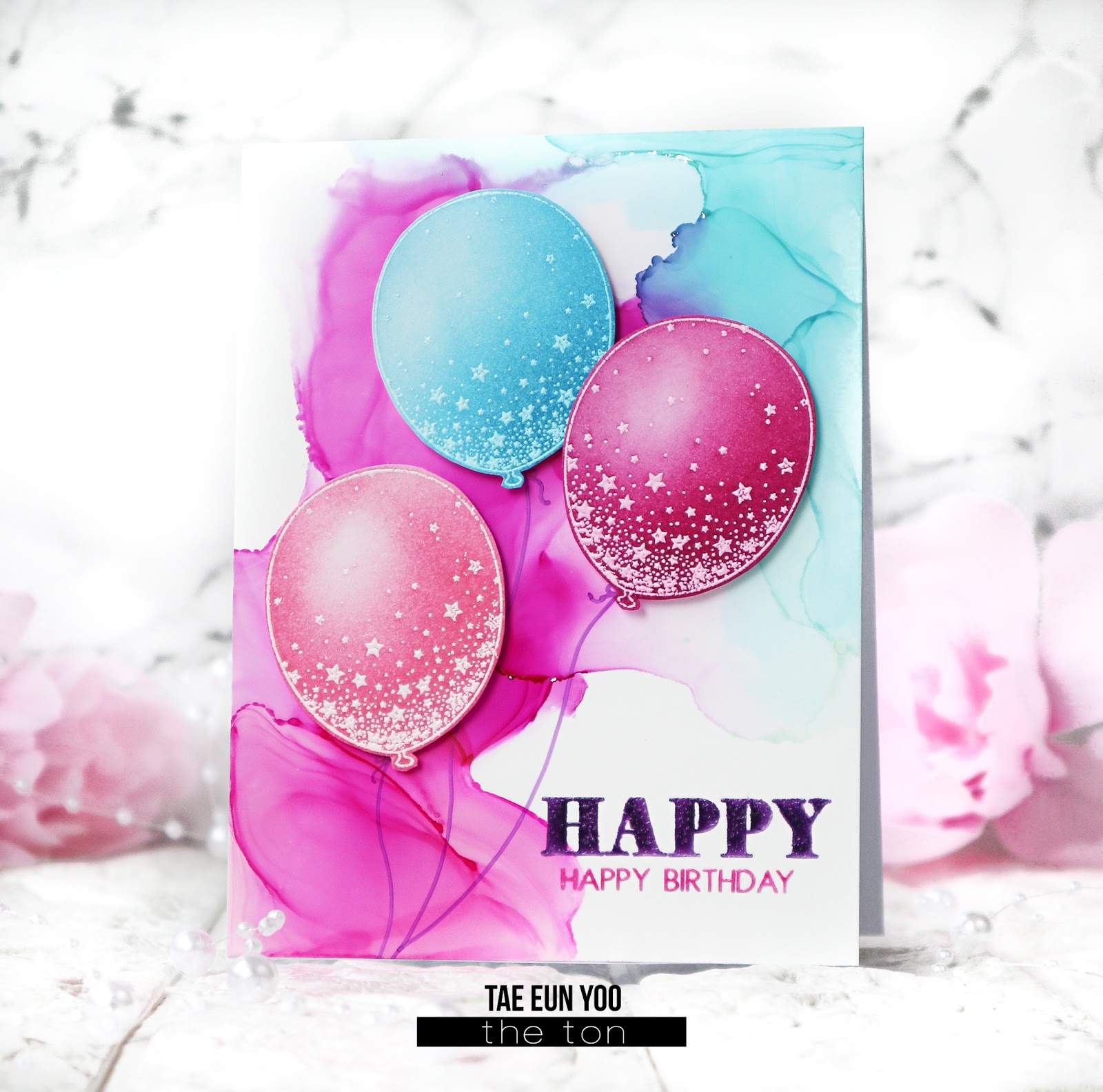 Today I’m on The Ton’s blog sharing a couple of cards I colored using alcohol inks. One bold floral stamp called Bright Peony was colored using alcohol ink and for my Confetti Balloons I created a cheerful alcohol ink background.