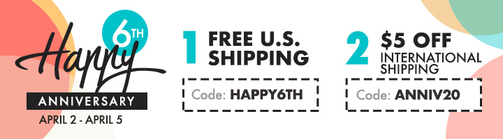 Enjoy FREE U.S. shipping with code HAPPY6TH or $5 OFF international shipping with code ANNIV20 at checkout. Offer valid from 4/2/2020 at 12:01 am EDT through 4/5/2020 at 11:59 pm EDT. Not valid on prior purchases. Cannot be combined with other promo codes.