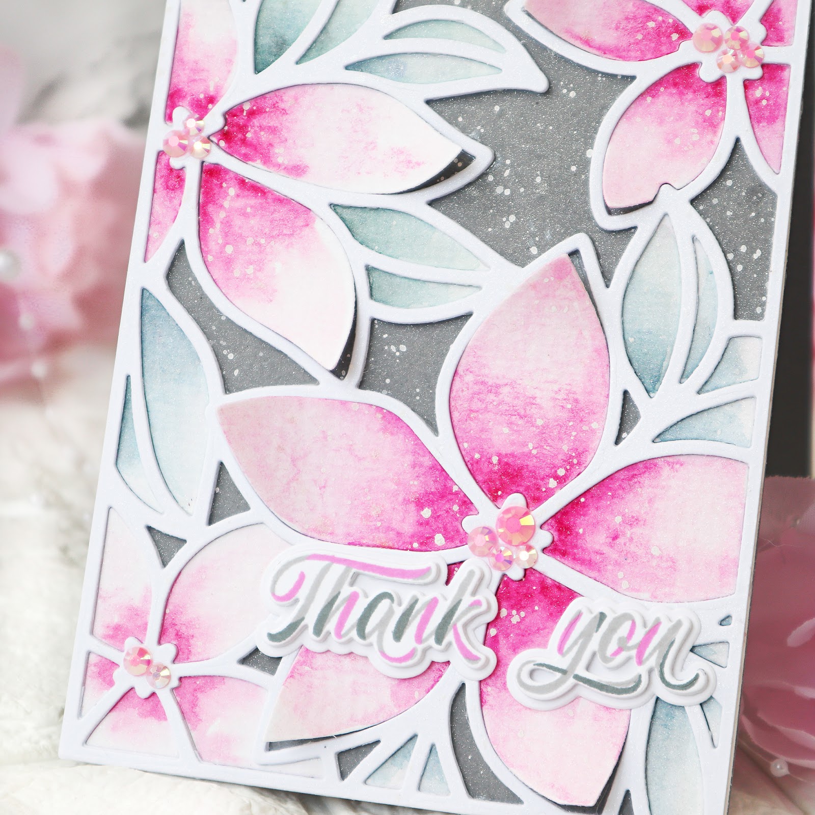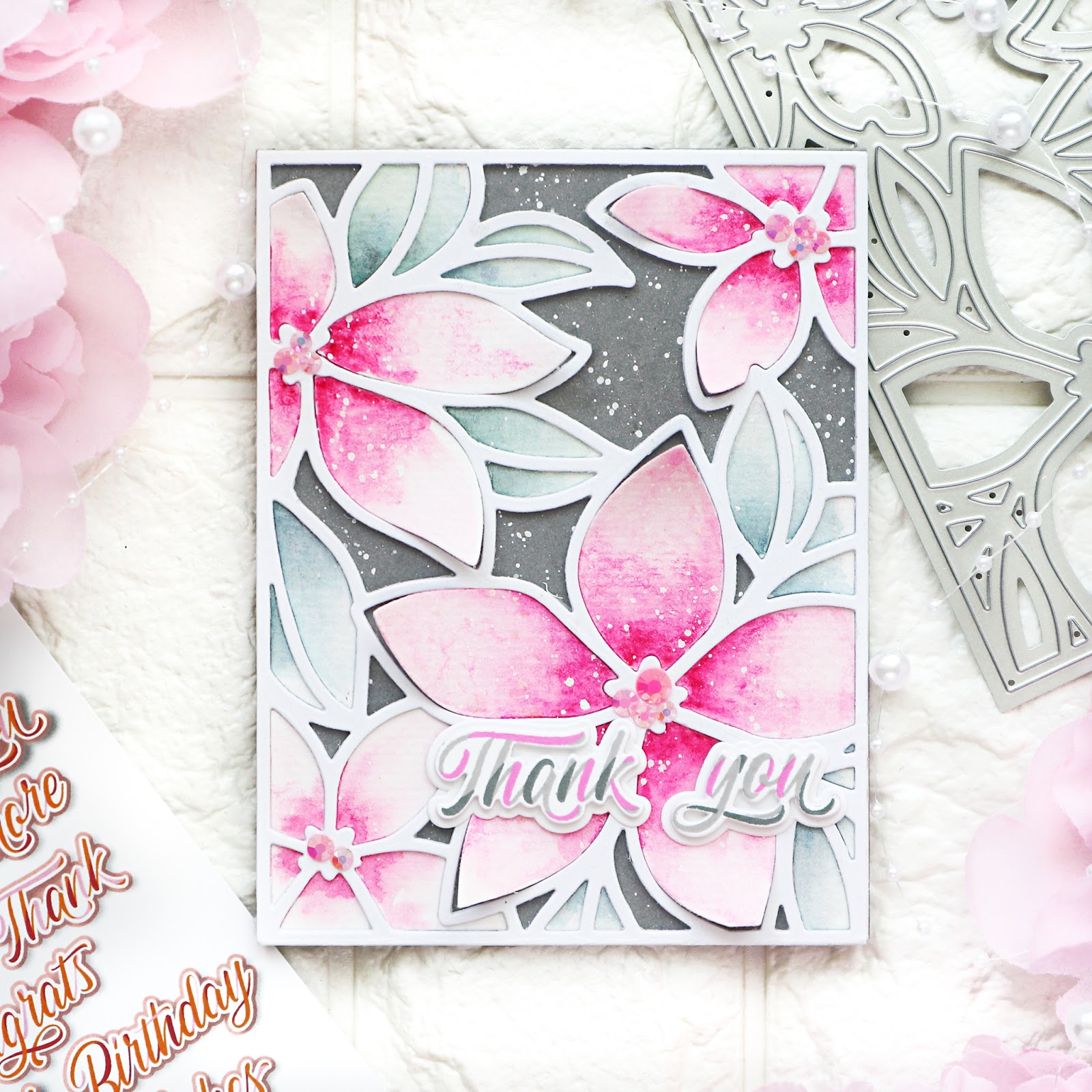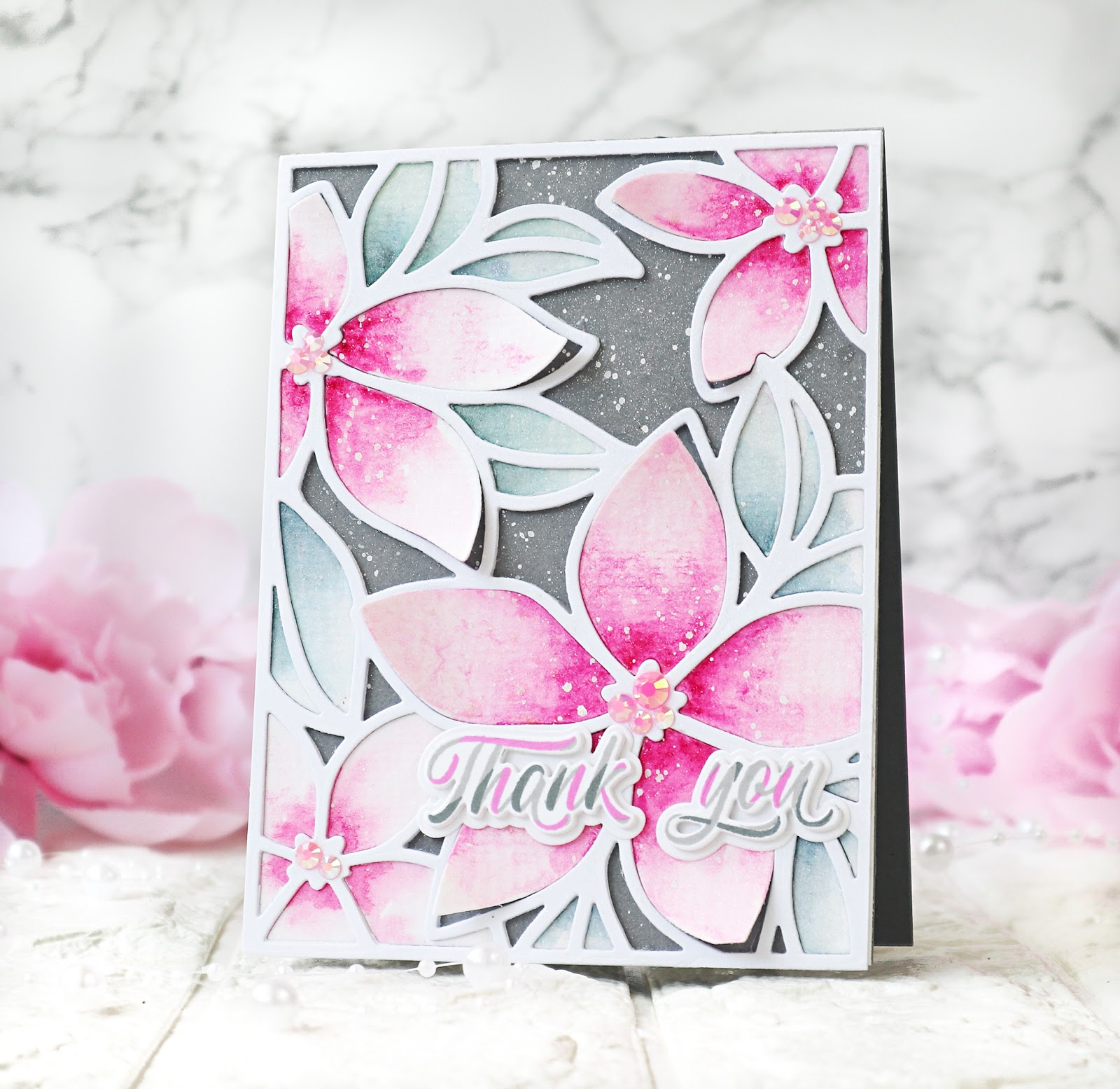My first card is featuring Ornate Floral Stand alone die. It is a coverplate die with large floral elements.