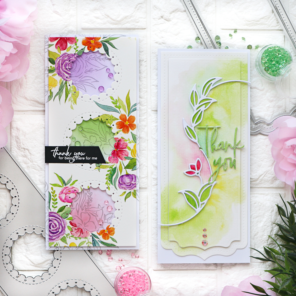 Hope you’re all doing well wherever you are ! Today I’m sharing a couple of slimline Thank You cards on the Pinkfresh Studio blog.