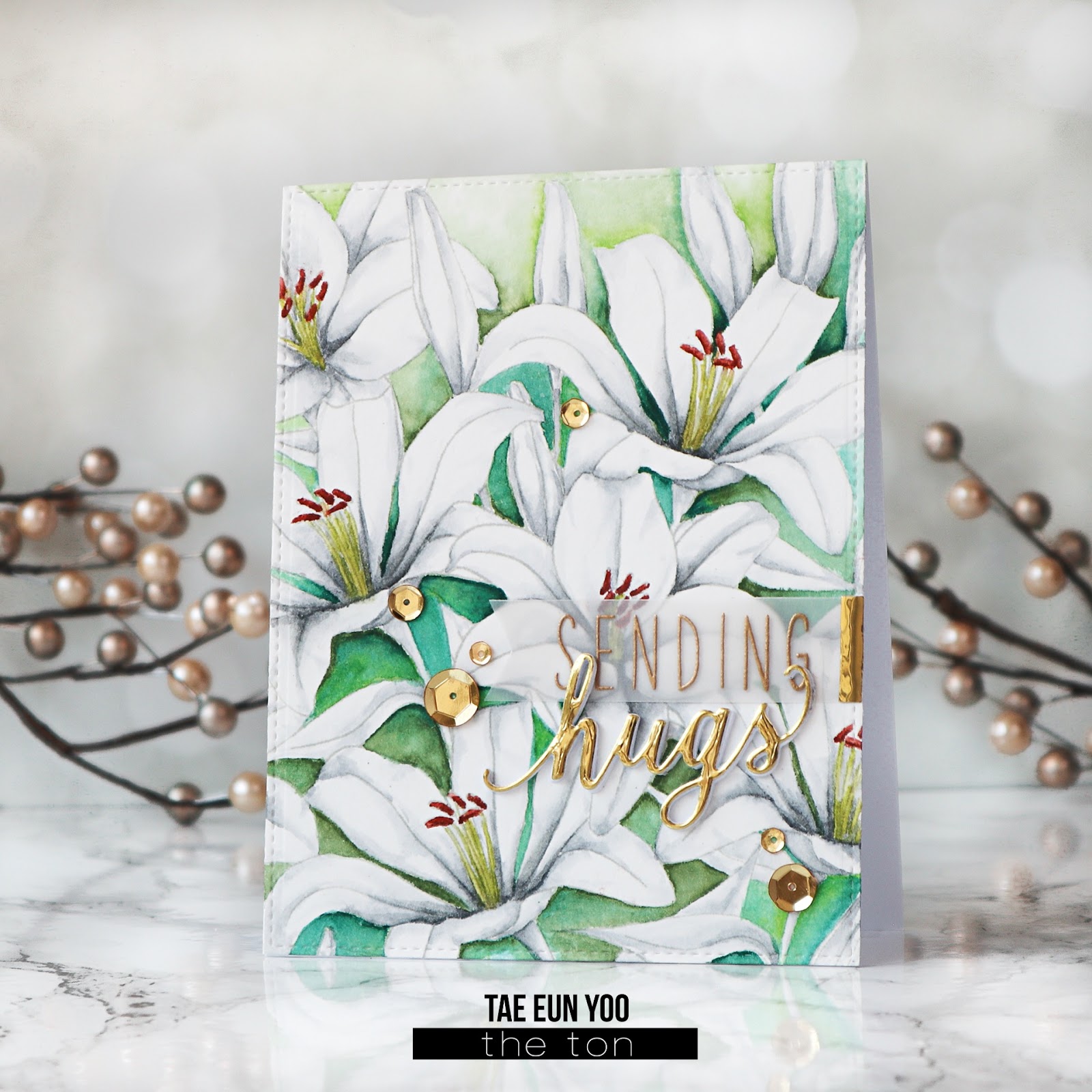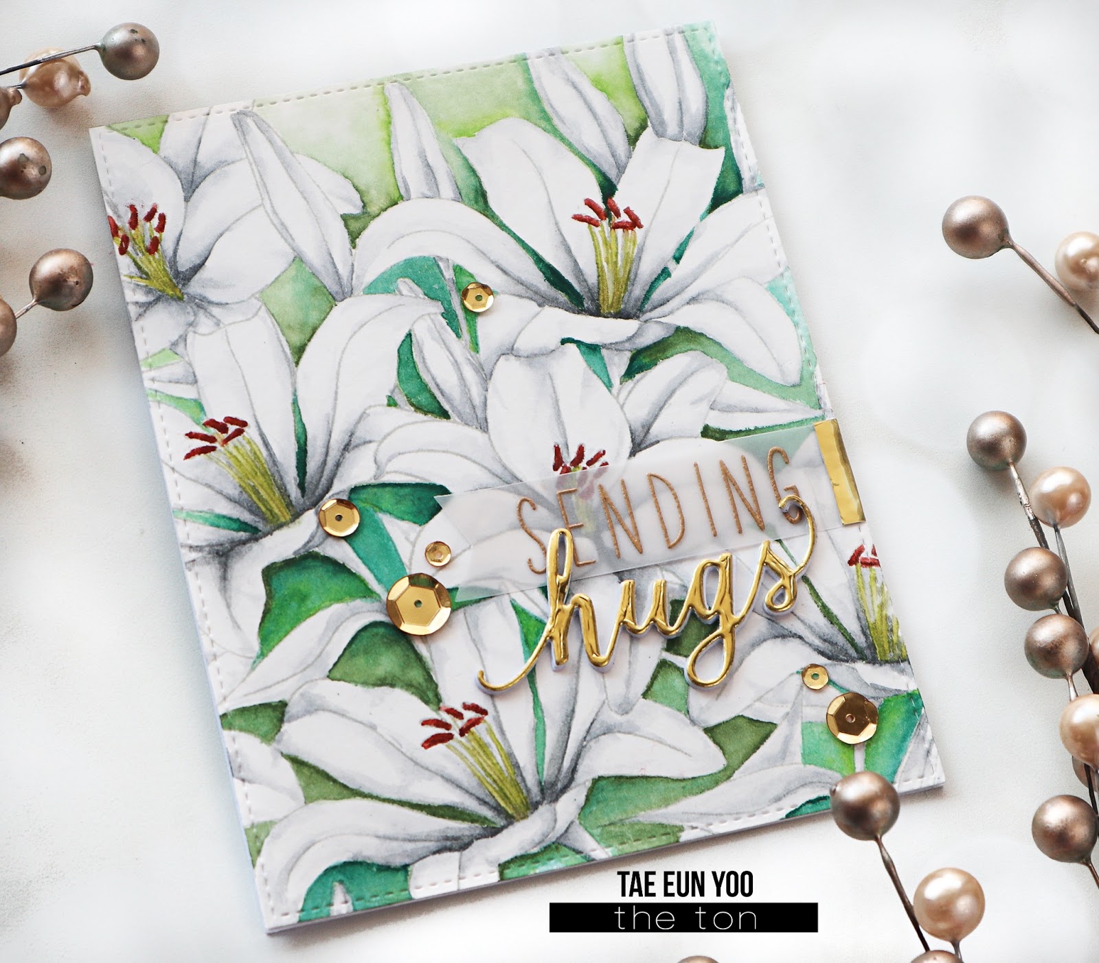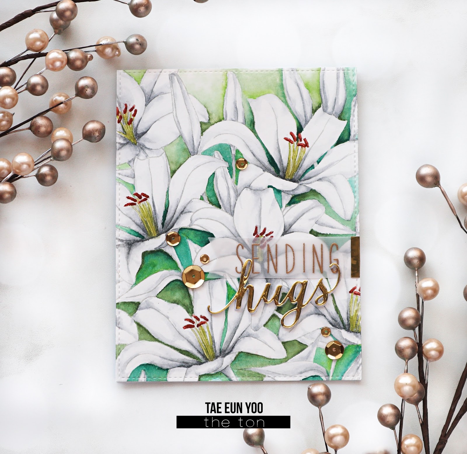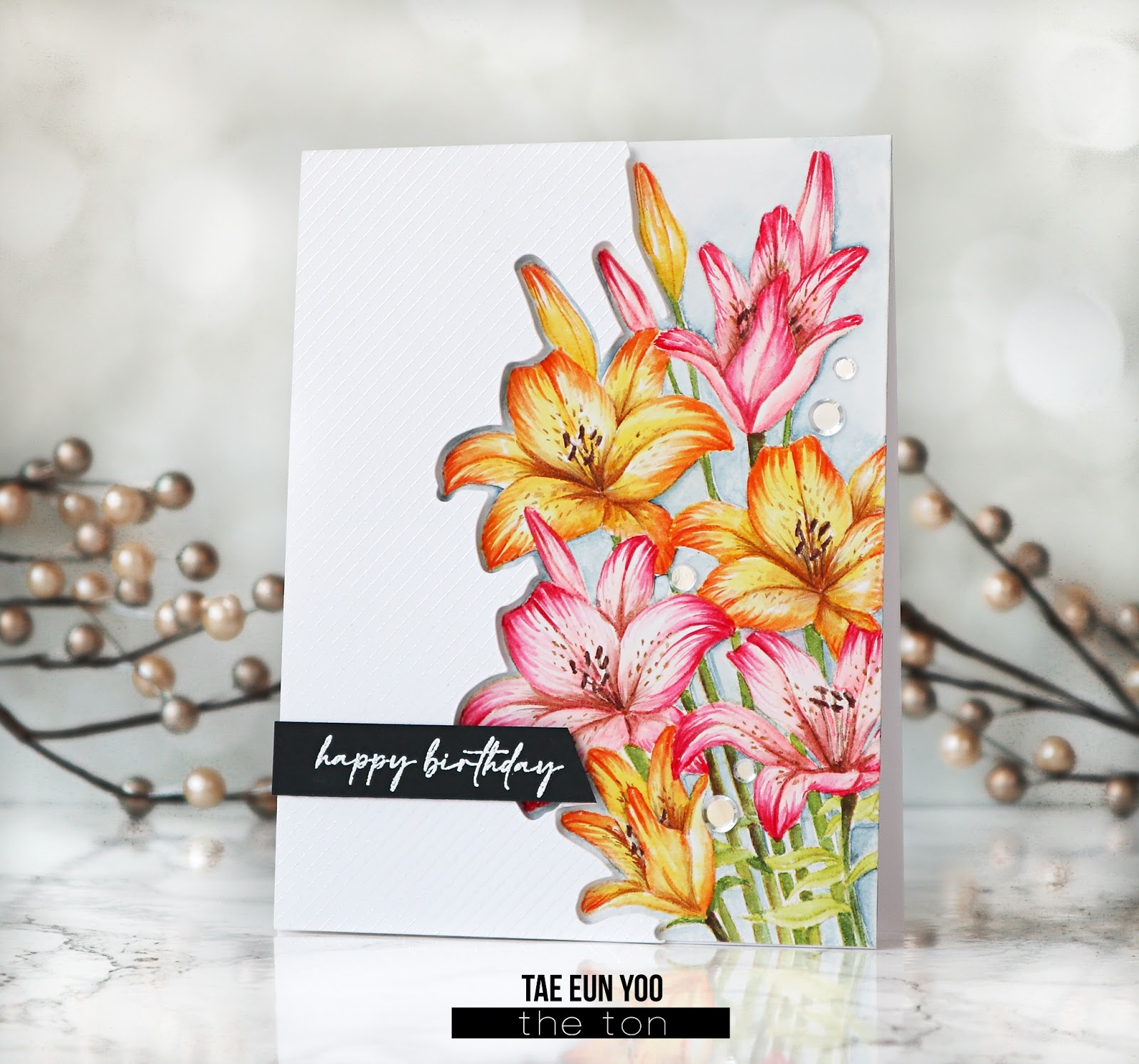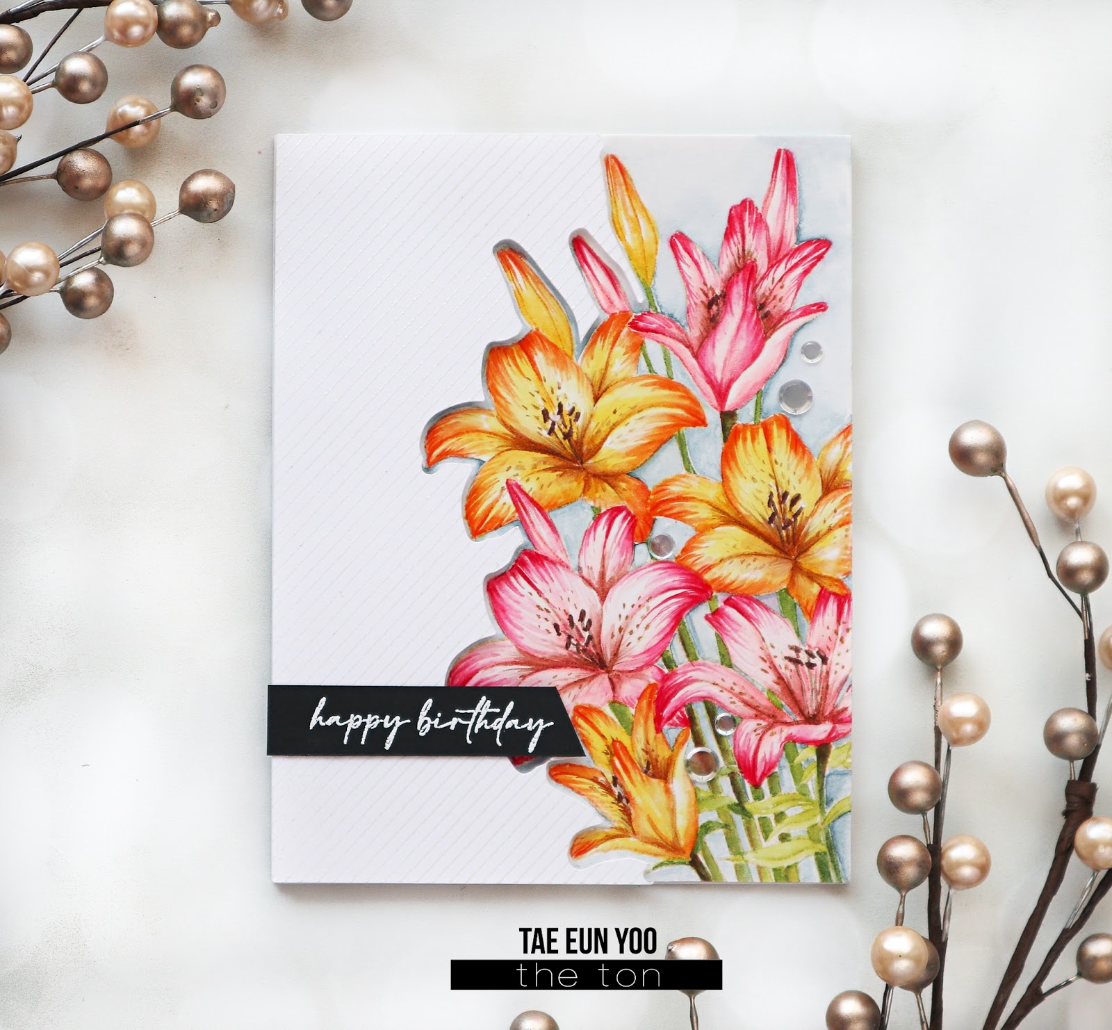 For this card I used the Coming Up Lilies stamp set and the coordinating cut file, which is also available in The Ton shop.