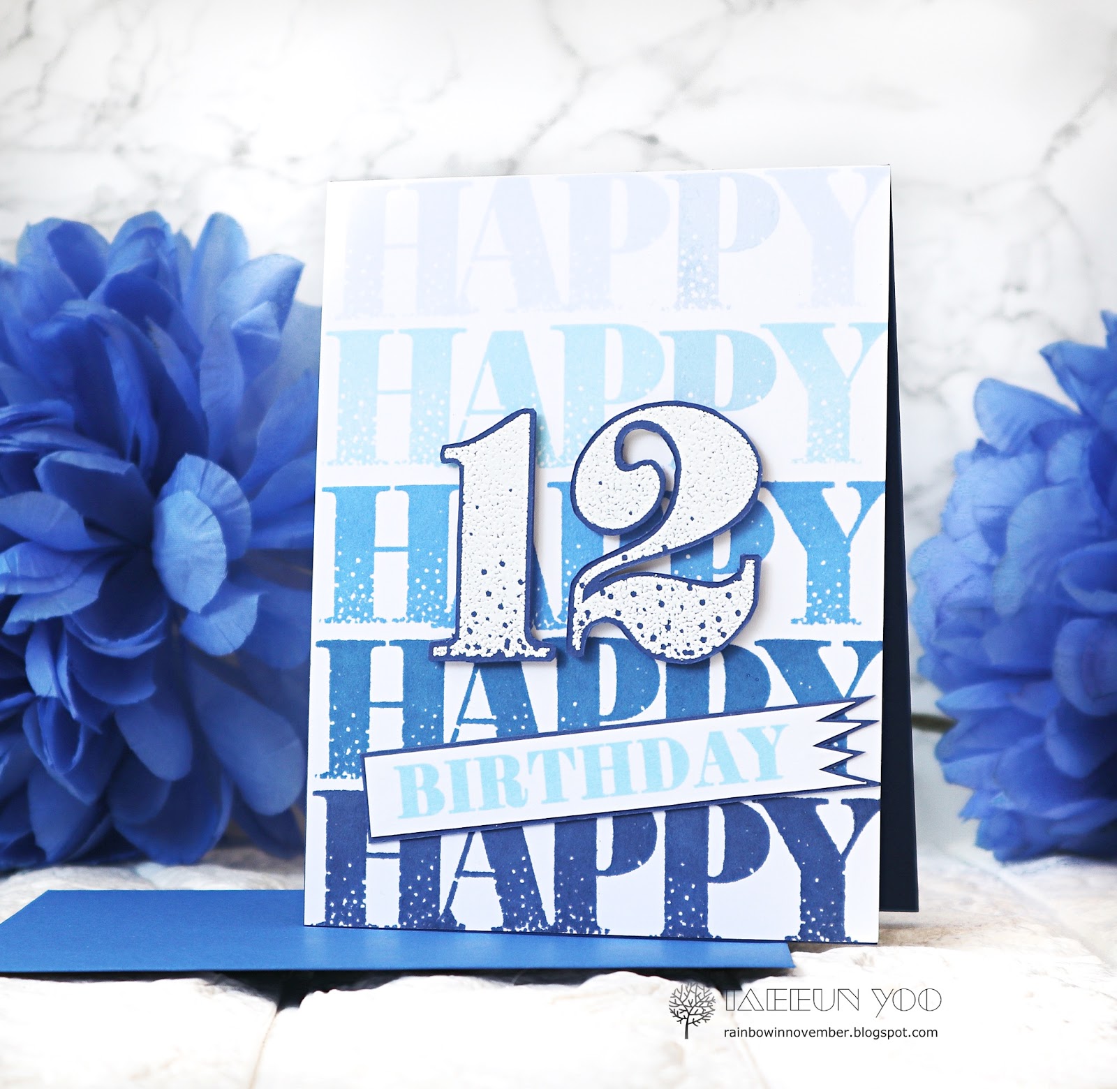 For my blue card I used the Confetti Alphas and Mega Confetti Numbers stamp sets by The Ton.