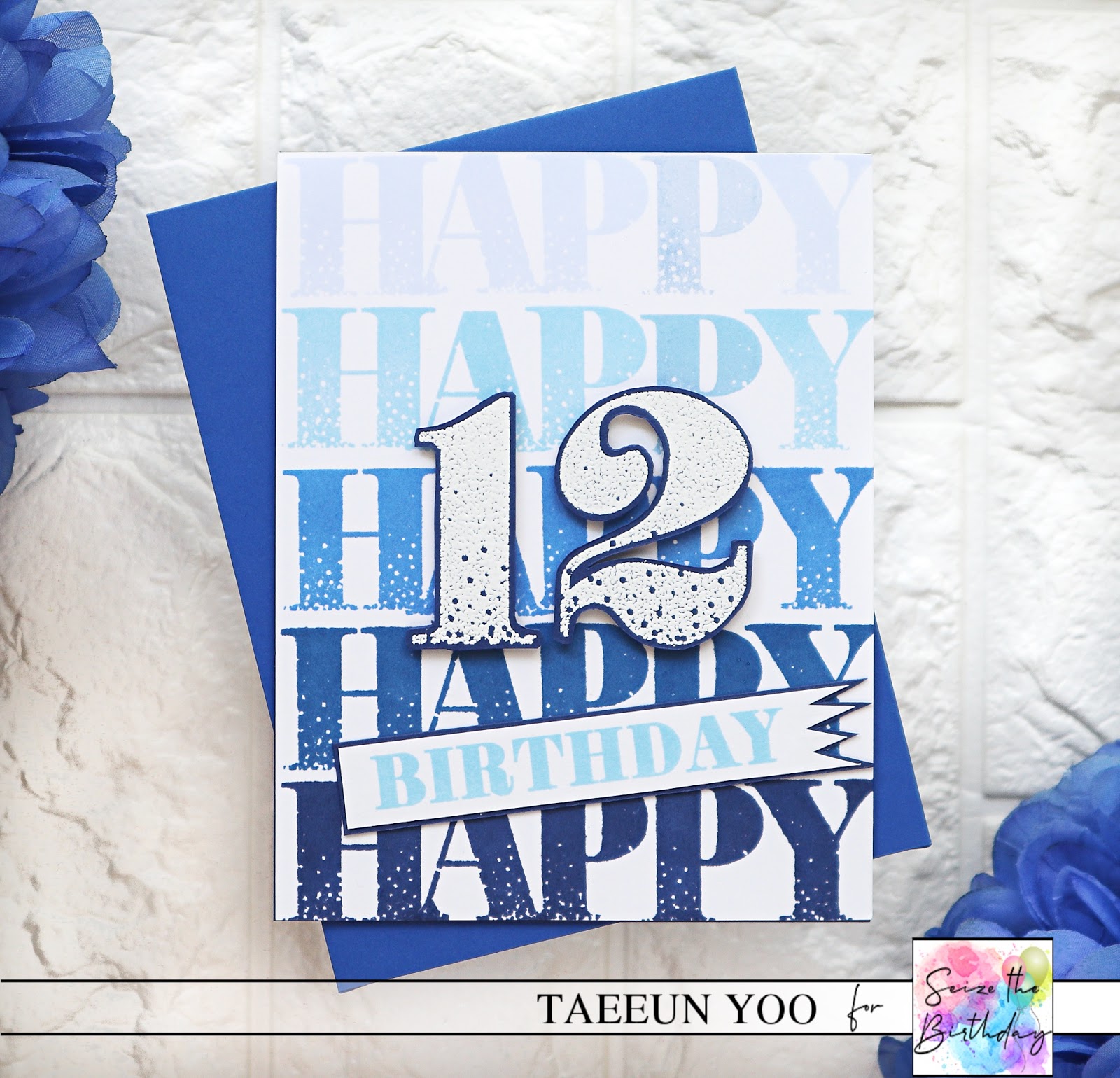 1. This is awesome! It looks very dynamic and I love the ombre in blue. The big bold 12 looks awesome against that repeated background. Fantastic card!