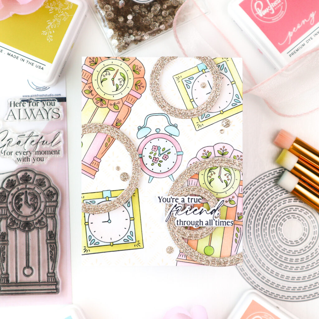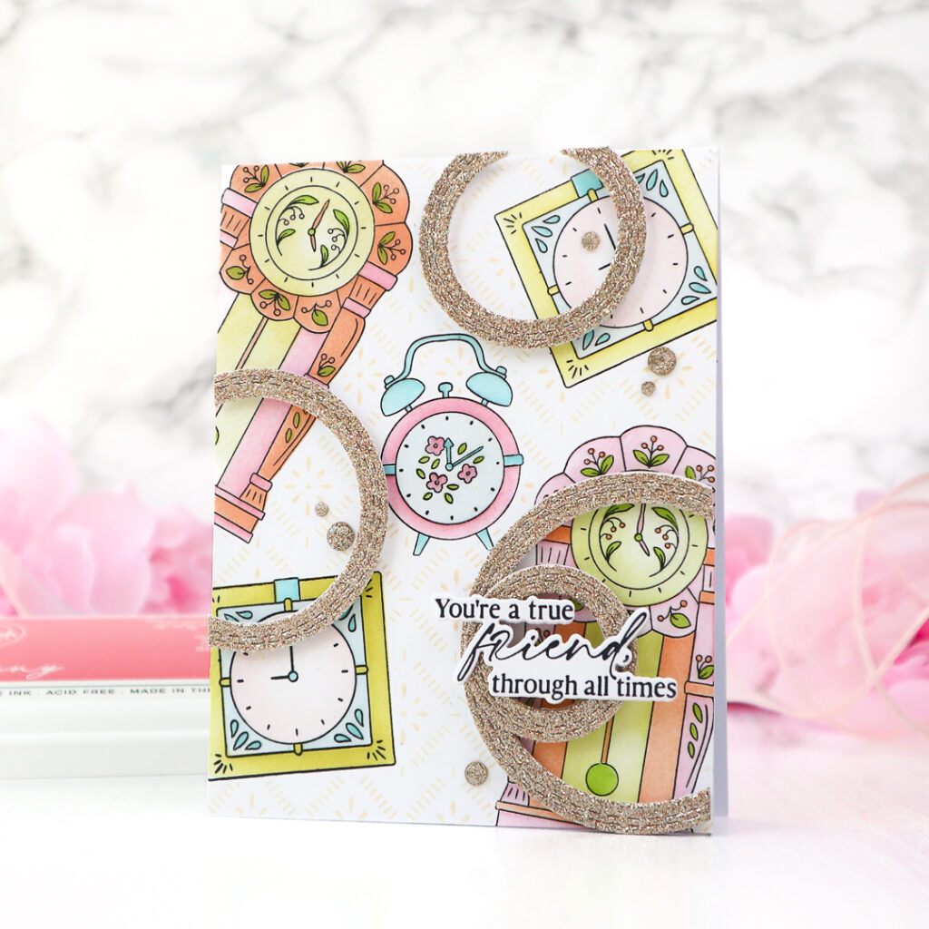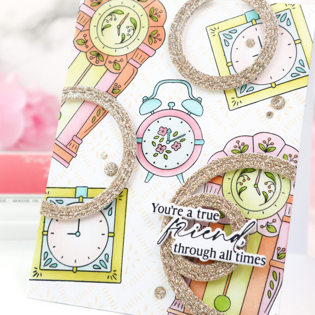 Today, I’m showcasing the Good Times product suite, which is also the namesake of this release. The Good Times suite includes three charming clock images and four versatile sentiments—perfect for timeless designs!