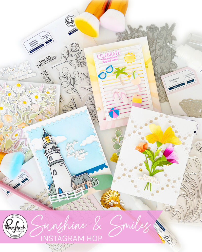 Have you enjoyed the reveal of the  Pinkfresh Studio “Sunshine & Smiles” Release yesterday and hopped along at the Blog Hop ? There are tons of inspiration and giveaways along the hop!