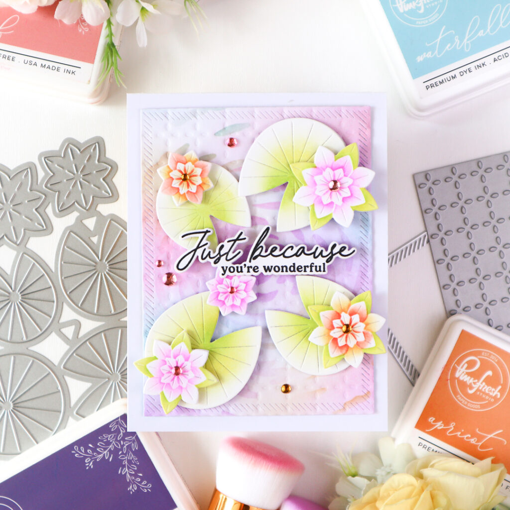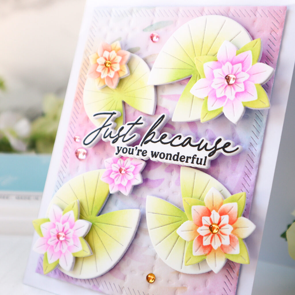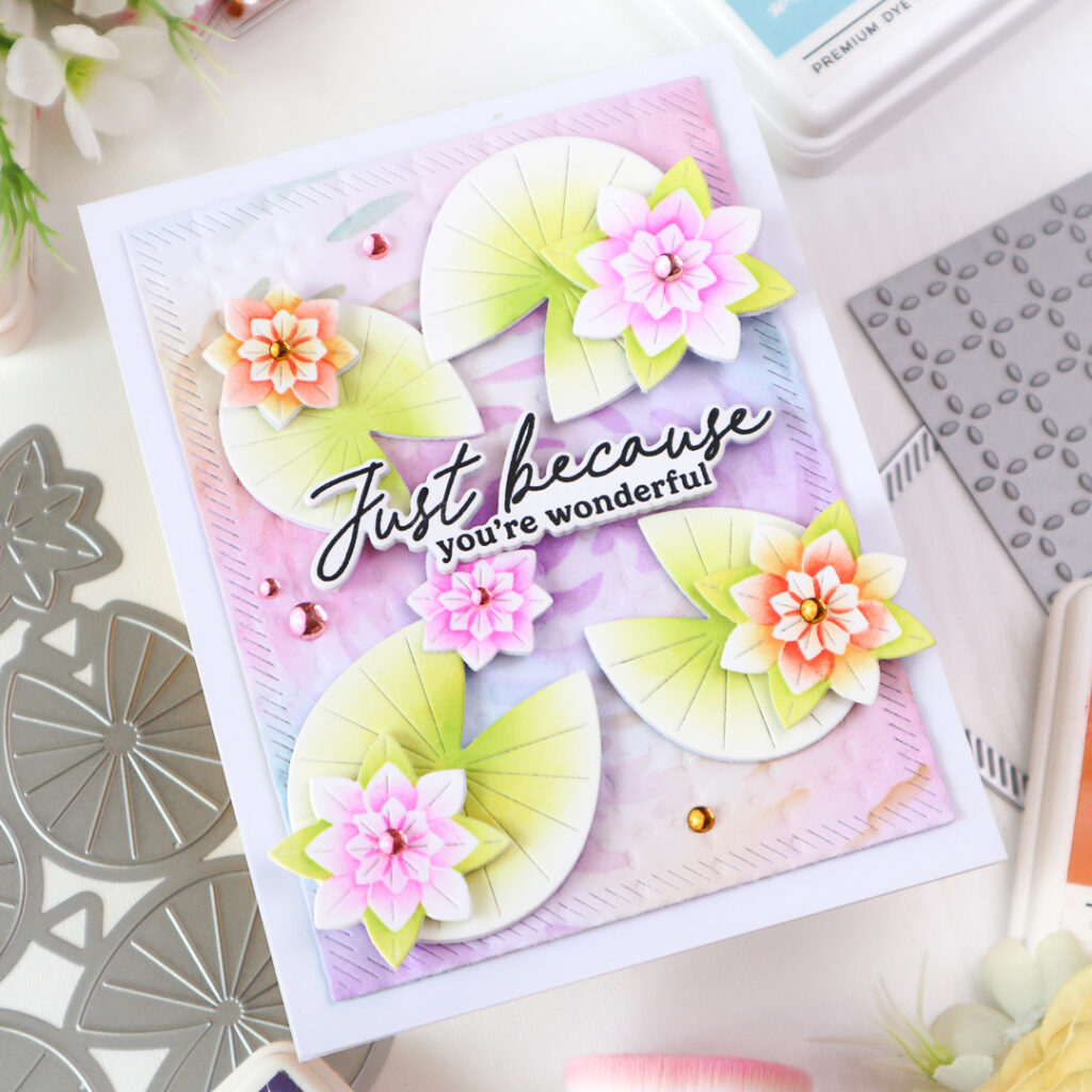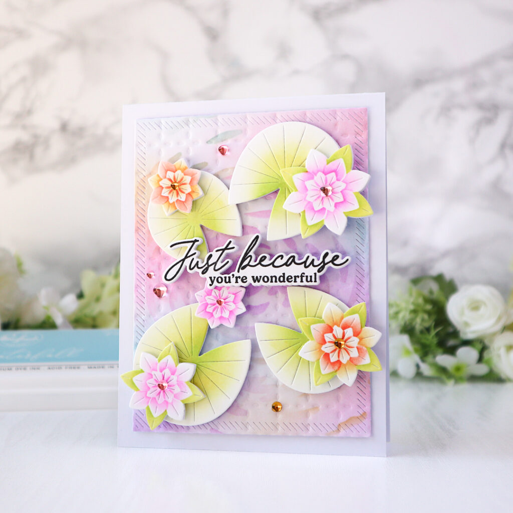 For today’s hop I created a soft and summery card in pastel tones featuring the Tranquil Water Lilies product suite.