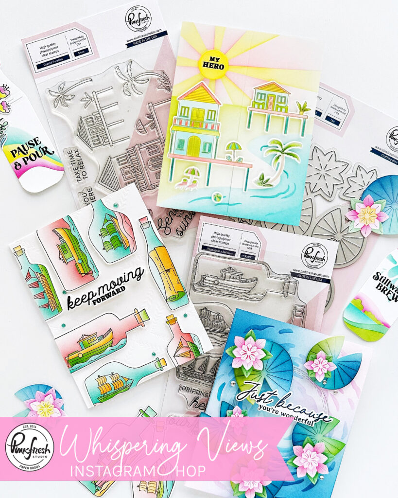 Have you enjoyed the reveal of the Pinkfresh Studio “Whispering Views” Release yesterday and hopped along at the Blog Hop ?
